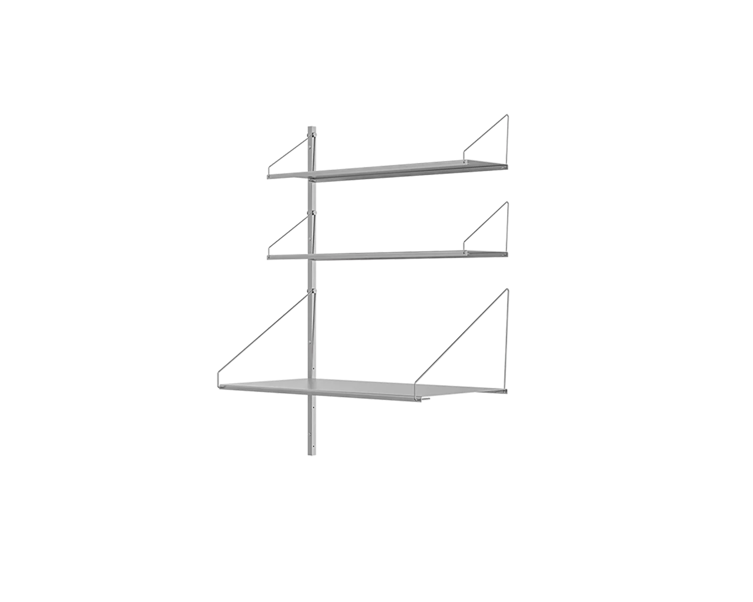 Shelf Library Stainless Steel is a natural extension of Frama’s Shelf Library universe. Characterized by a modular system and fastened with solid steel screws on stainless steel rails, the shelves can be easily placed and re-styled in a variety of ways.