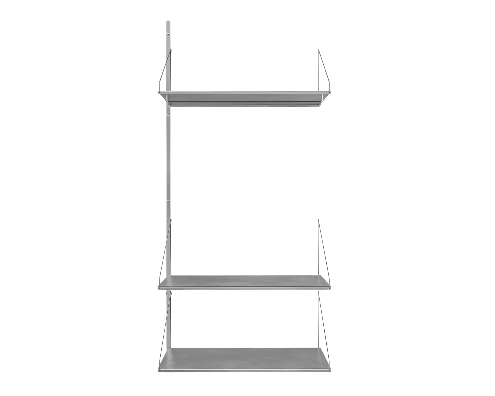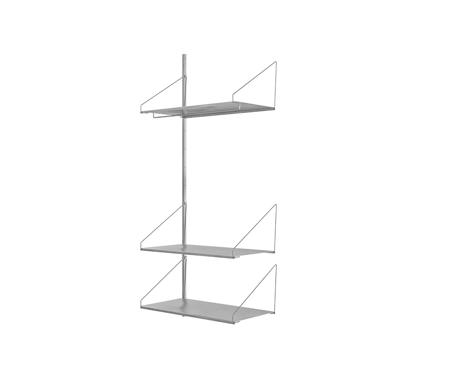Shelf Library Stainless Steel is a natural extension of Frama’s Shelf Library universe. Characterized by a modular system and fastened with solid steel screws on stainless steel rails, the shelves can be easily placed and re-styled in a variety of ways. This versatile design lends itself to any space, creating a minimal backdrop for your goods and objects.