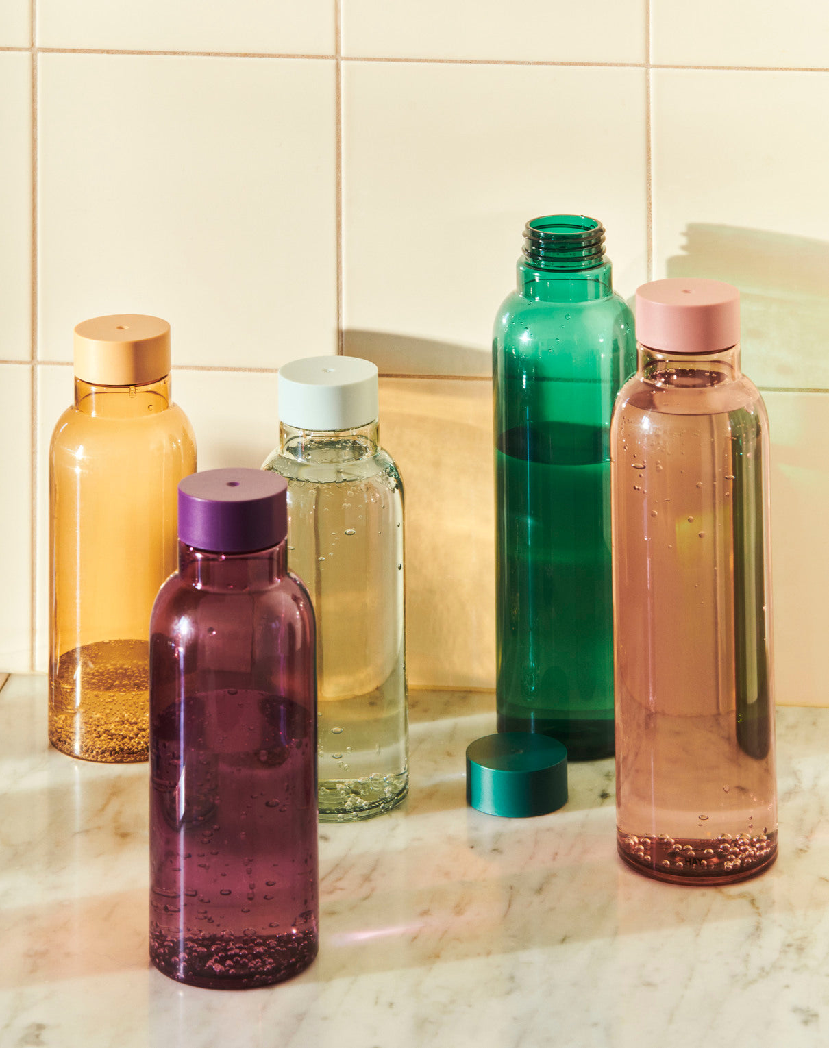 Designed for HAY by Naoto Fukasawa, the simple yet colourful Miz Water Bottle reflects the Japanese designer's characteristically minimalistic approach to designing objects. Featuring a slim shape with clean lines, Miz Water Bottle is made from recycled PET with a removable silicone ring for easy cleaning. Available in different sizes and colours with matching lids, Miz Water Bottle can be used to keep drinks cool in the fridge or used on the go.