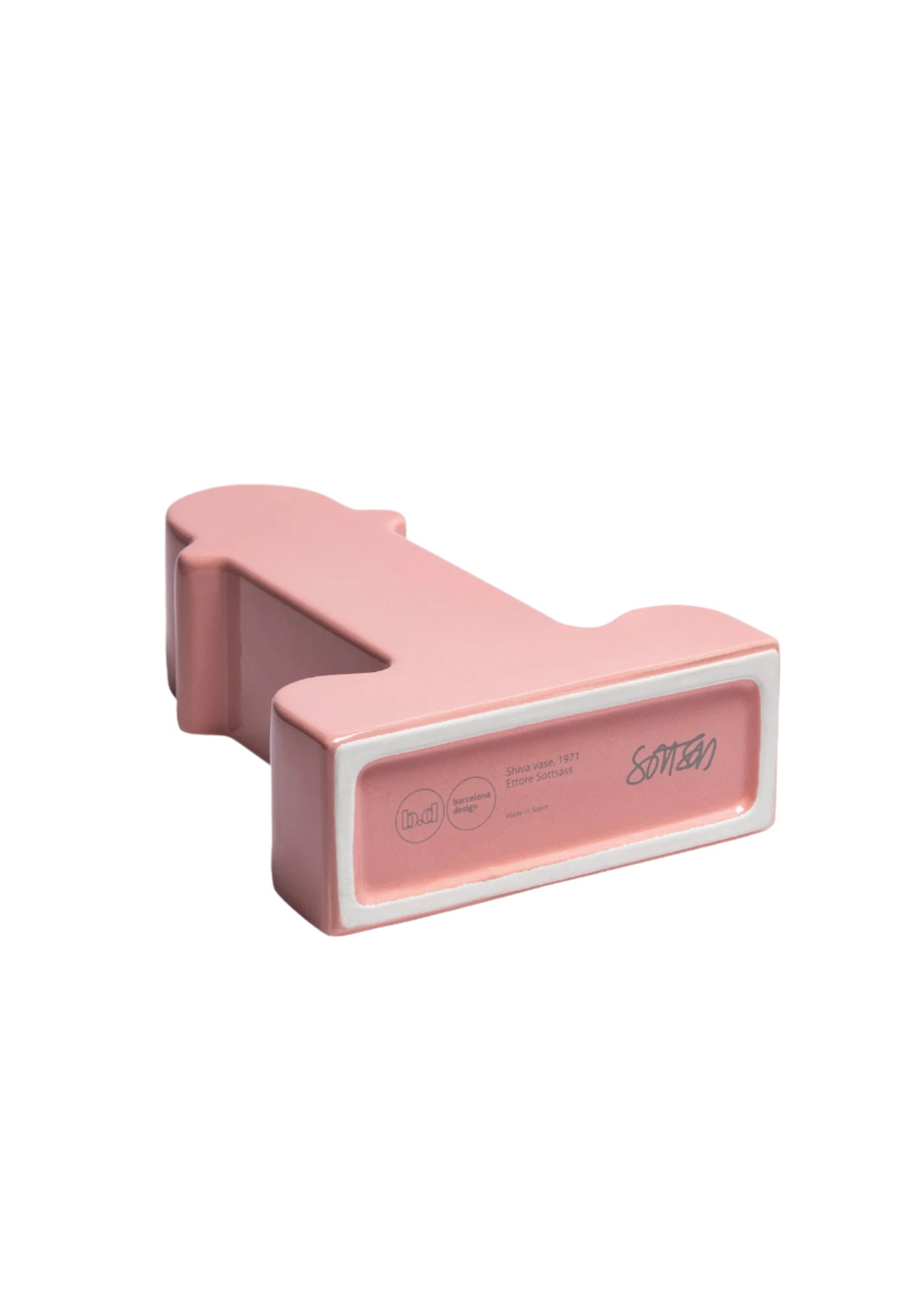 The Shiva Vase is sculpture and vase. It is a symbol of Ettore Sottsass and an icon. Sottsass designed the Shiva Vase when travelling to Barcelona for love in 1973. He encountered many cultures, religious symbolism, and inspiration on his travels. The smooth, curving body references the Hindu god Shiva, who was often represented by a phallic ‘Lingam’ devotional sculpture. It has a clean symmetry with its bright colour playing across the form with a brilliant glaze. The Shiva vases are ‘small architectures... like little monuments’, creating energy wherever placed.