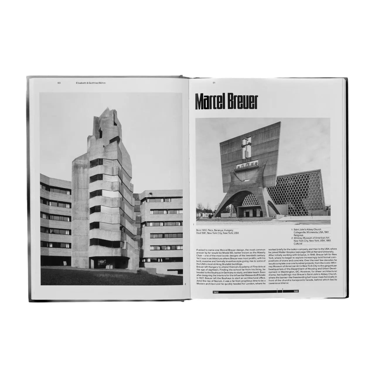 Featured architects include: John Andrews; João Batista Vilanova Artigas; Lina Bo Bardi; Bogdan Bogdanović; Marcel Breuer; Douglas Cardinal; André-Jacques Dunoyer de Segonzac; Bertrand Goldberg; Ernő Goldfinger; Jadwiga Grabowska-Hawrylak; Agustín Hernández Navarro; John M. Johansen; Louis I. Kahn; Denys Lasdun; Le Corbusier; João da Gama Filgueiras Lima; Alberto Linner Díaz; Owen Luder; Paulo Mendes da Rocha; Oscar Niemeyer; William L. Pereira; Affonso Eduardo Reidy; Paul Rudolph; Moshe Safdie; Alison Smithson; Clorindo Testa; Decio Tozzi; and John Carl Warnecke