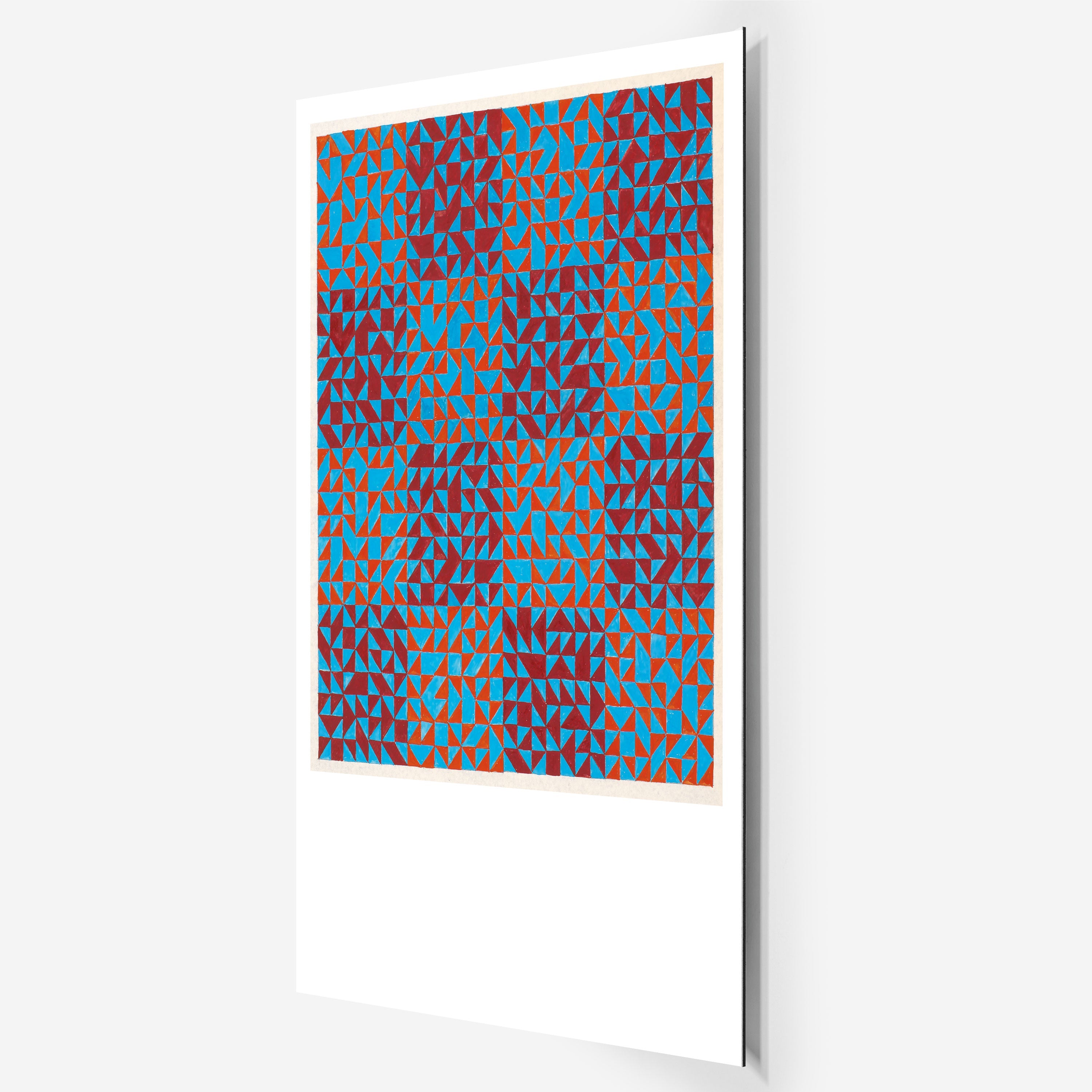 アンニ・アルバースによる1970年の色彩習作は、壁掛け用にデザインされました。三角形のモチーフは、自然界の結晶構造における秩序と混沌の緊張感、そしてアンニのメキシコ文化への関心を反映しています。彼女はメキシコへの度重なる訪問とメソアメリカの形態への強い関心から、プレコロンブス期の工芸品や織物も収集しました。