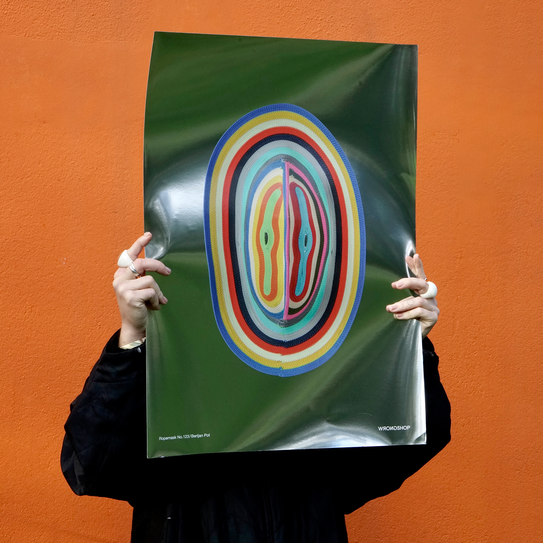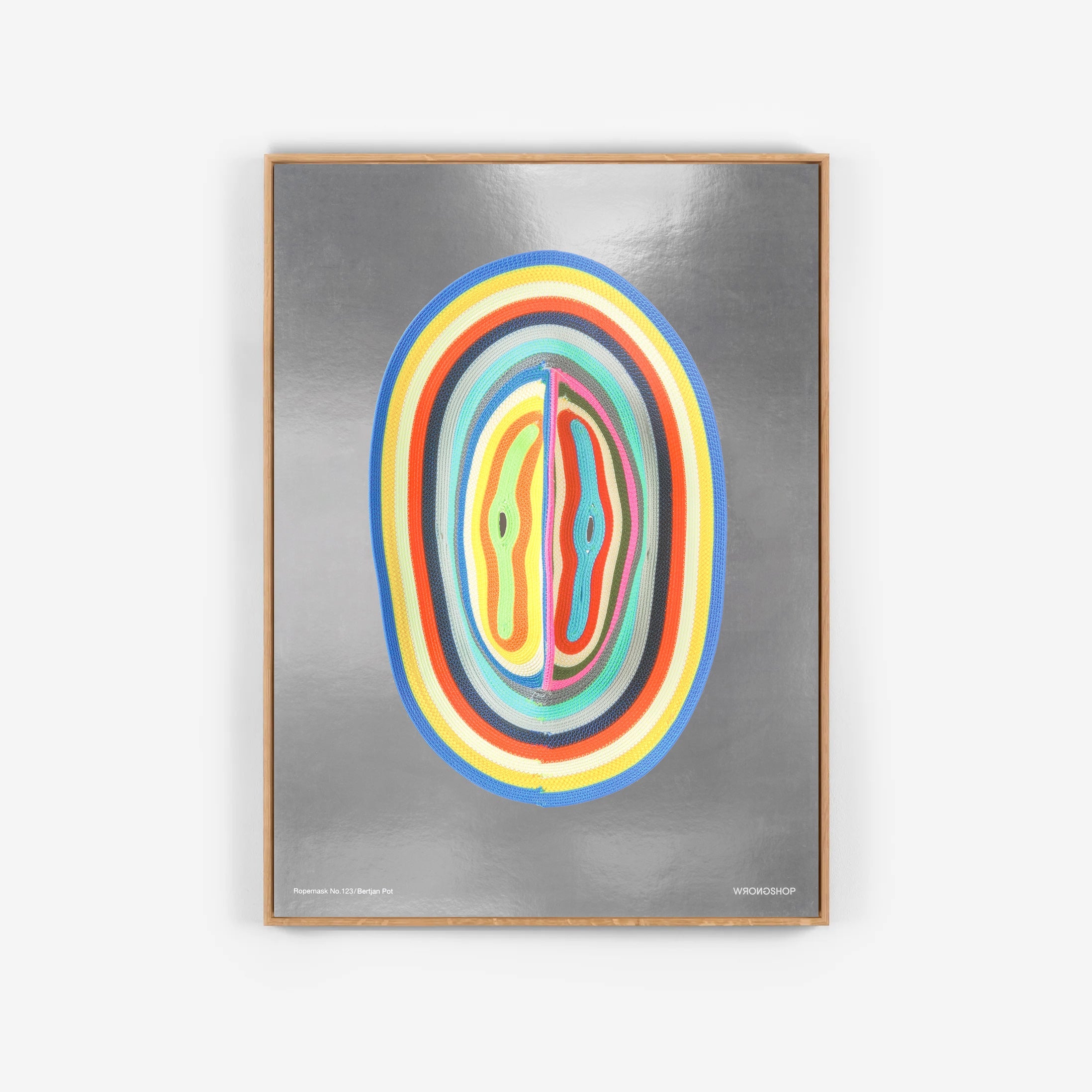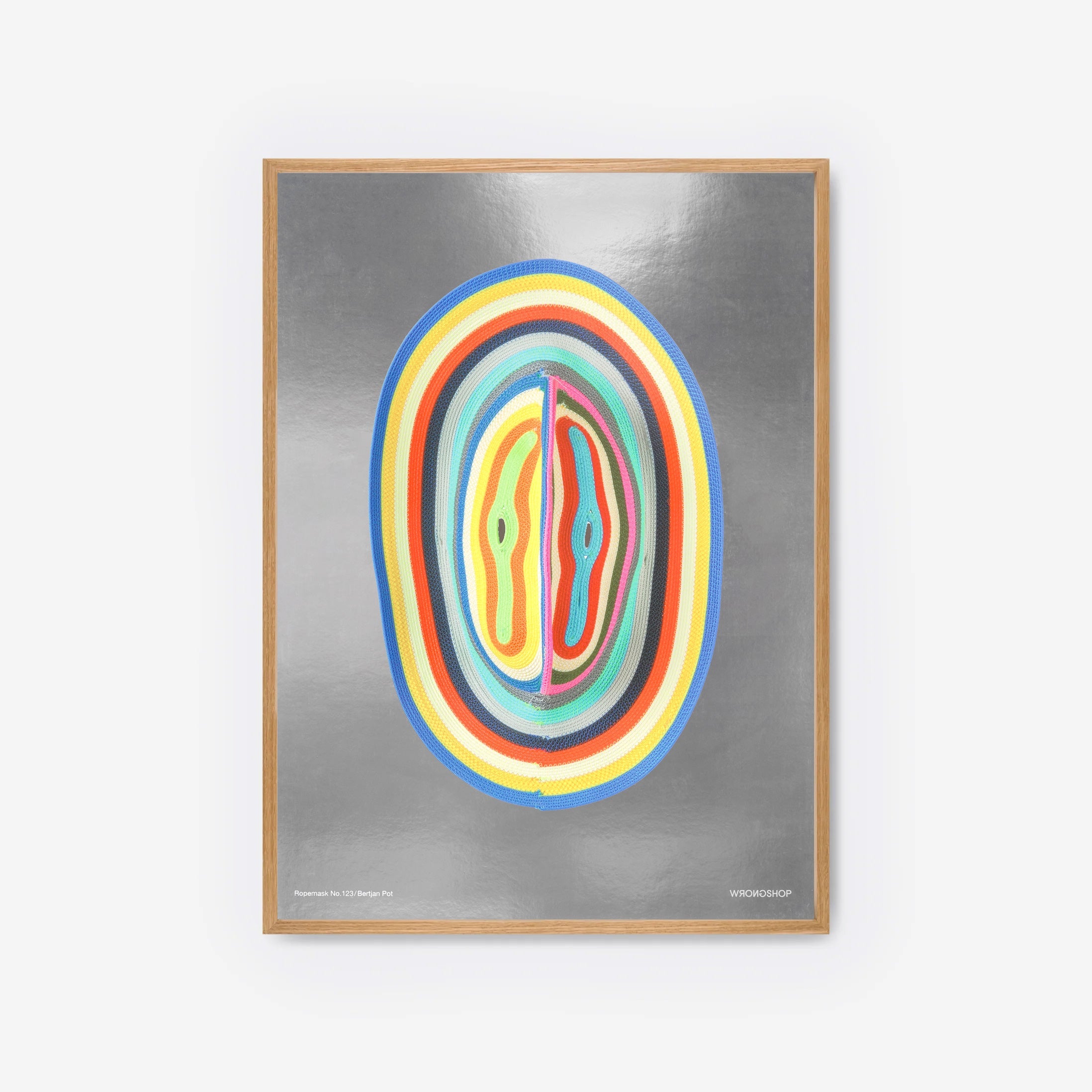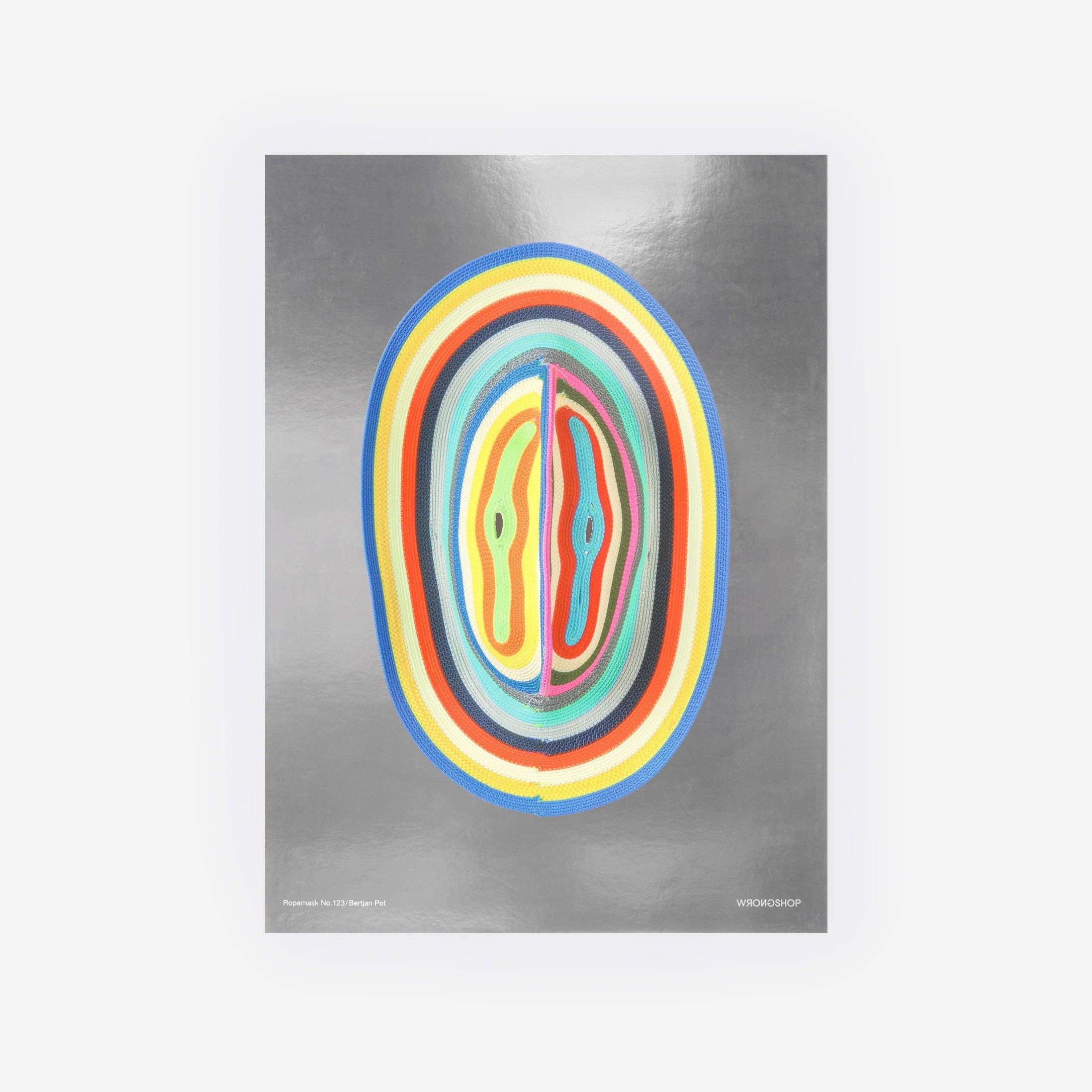 この高品質のポスターは、Bertjan Pot のRopemasksシリーズのオリジナルマスクを鮮やかなデジタルプリントにしたものです。アーティストのシュールなスタイルは、重ね合わせた画像によって強調され、ユニークな鏡面背景と組み合わされています。当社の厚手の半反射性 Mirri Silver 紙は、彼の作品に見られる素材の実験をシミュレートしています。Bertjanのシリーズの詳細については、こちらをご覧ください。