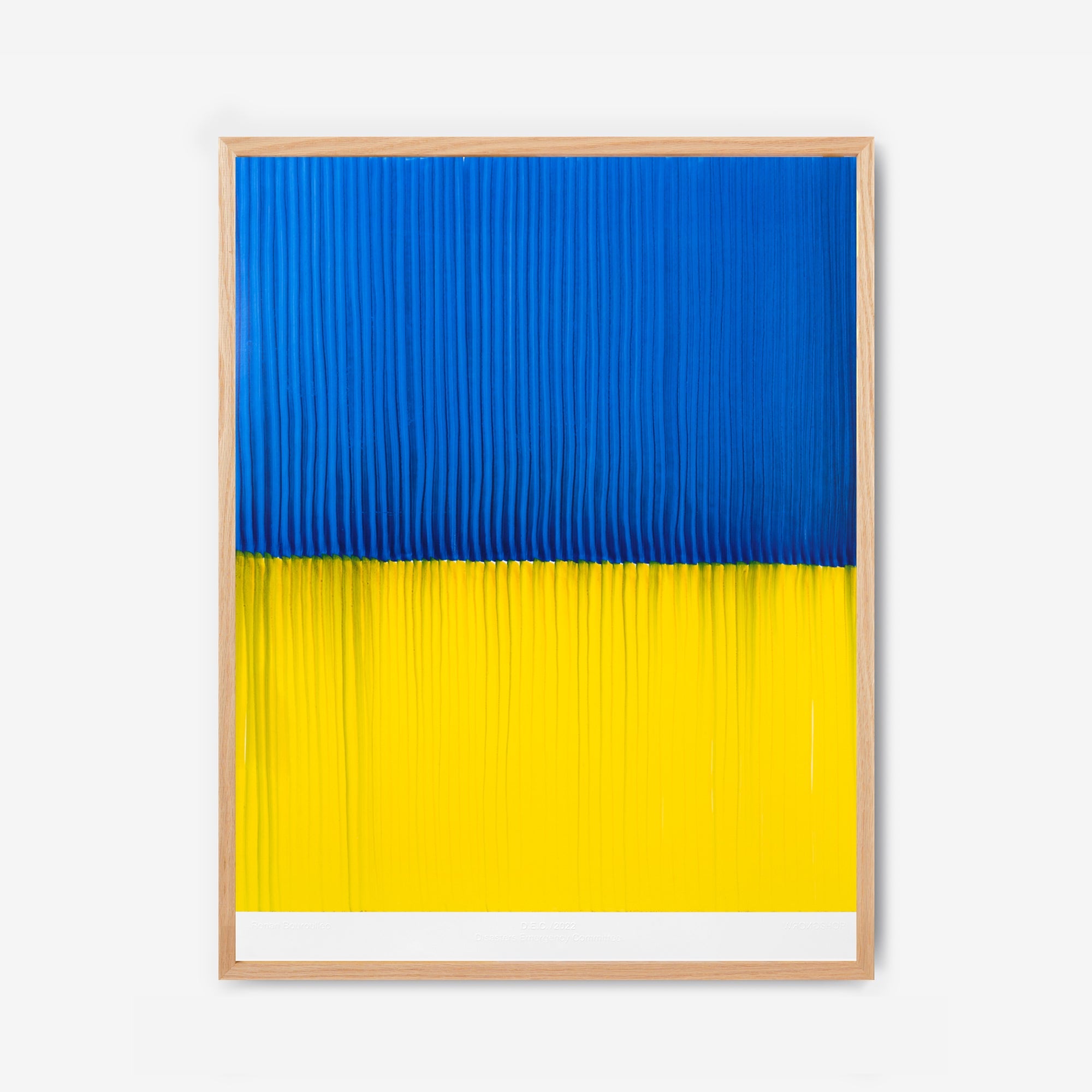 著名な芸術家ロナン・ブルレックの「連帯ポスター」は、ウクライナの国旗に敬意を表した、青と金の感動的な二色のポスターです。