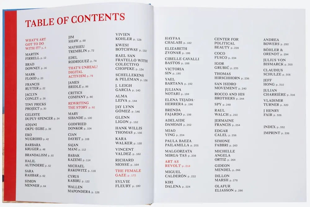アートには、コミュニケーションし、疑問を投げかけ、意見に影響を与える能力があるため、活動において不可欠なツールとなっています。私たちは民主主義があらゆる側面から挑戦され、左派と右派の間の溝が広がる激動の時代に生きています。多様なテーマは、現代アーティストが論争を巻き起こし、政府の問題に光を当て、共感を生み出すために取り上げているテーマです。