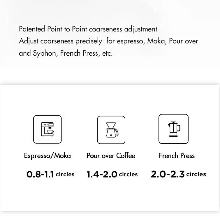新しい Timemore Chestnut C3 ESP Pro は、エスプレッソからポアオーバー、フレンチプレスまで、さまざまな挽き具合の設定が可能です。このグラインダーの特徴は、ステンレススチール製の高品質 S2C グラインダーです。このグラインダーは、最初のステップで豆をカットし、2 番目のステップでのみ挽きます。これにより、特に一貫した挽き具合が保証されます。C3S Pro と比較すると、C3 ESP Pro はクリック数が多く、より細かい設定オプションが用意されています。