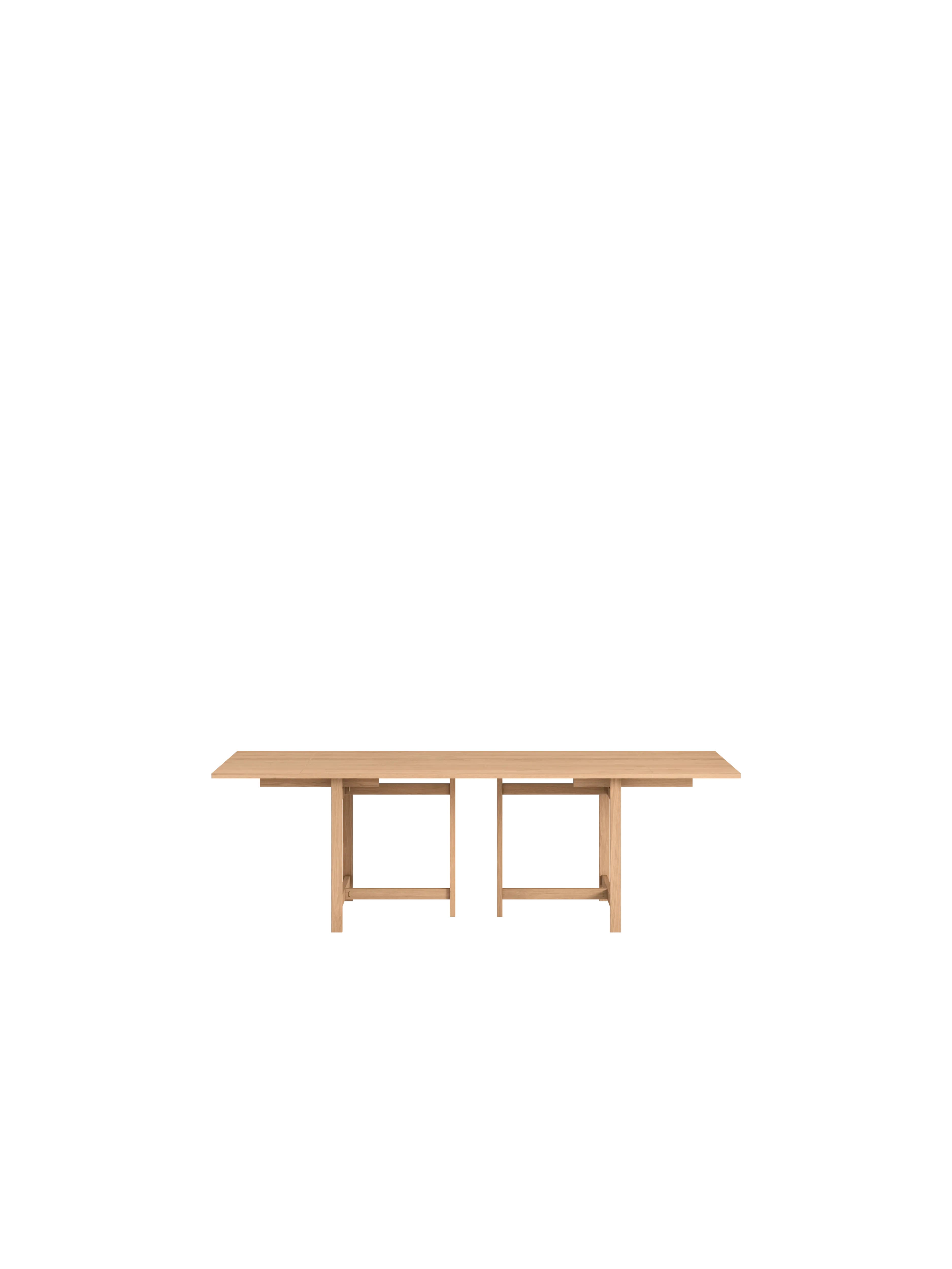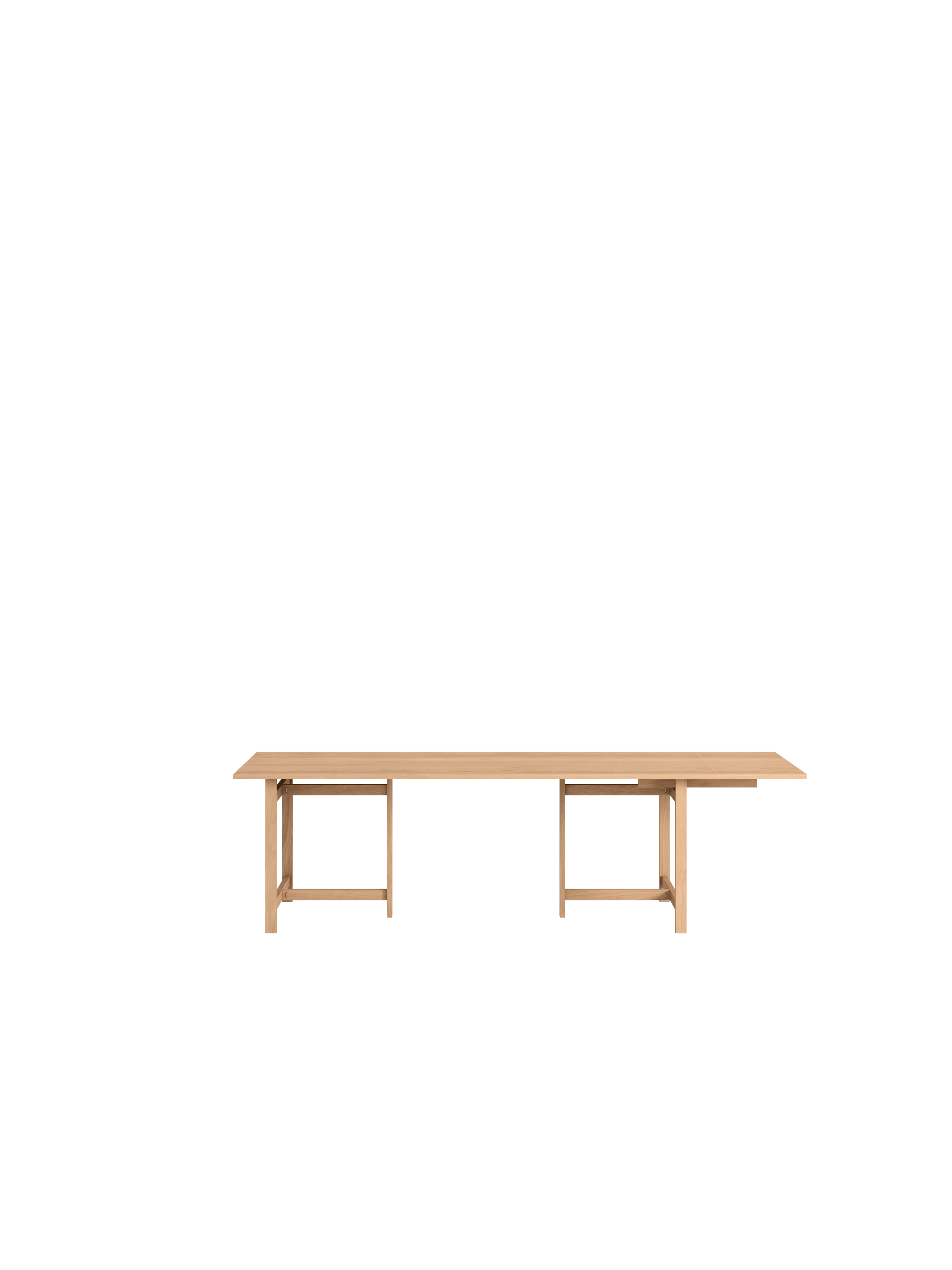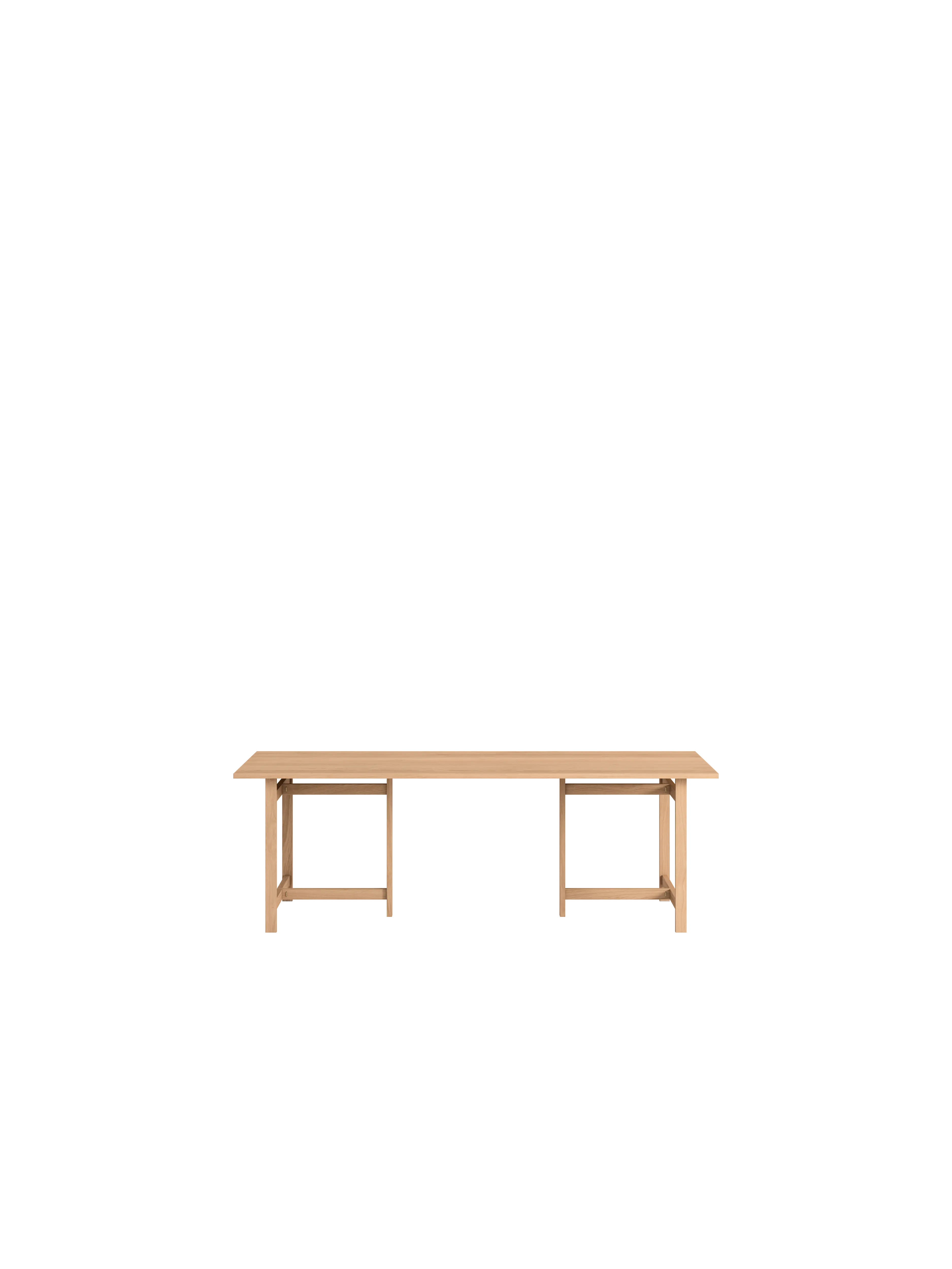 MOEBE 長方形ダイニング テーブルは、形状も構造もシンプルです。平らな状態で届き、2 つの T フレームに組み立てられ、テーブル トップが上に固定されています。テーブルは 2 つの長さ、4 つの仕上げから選択でき、ヨーロッパ製で FSC 認証を受けています。