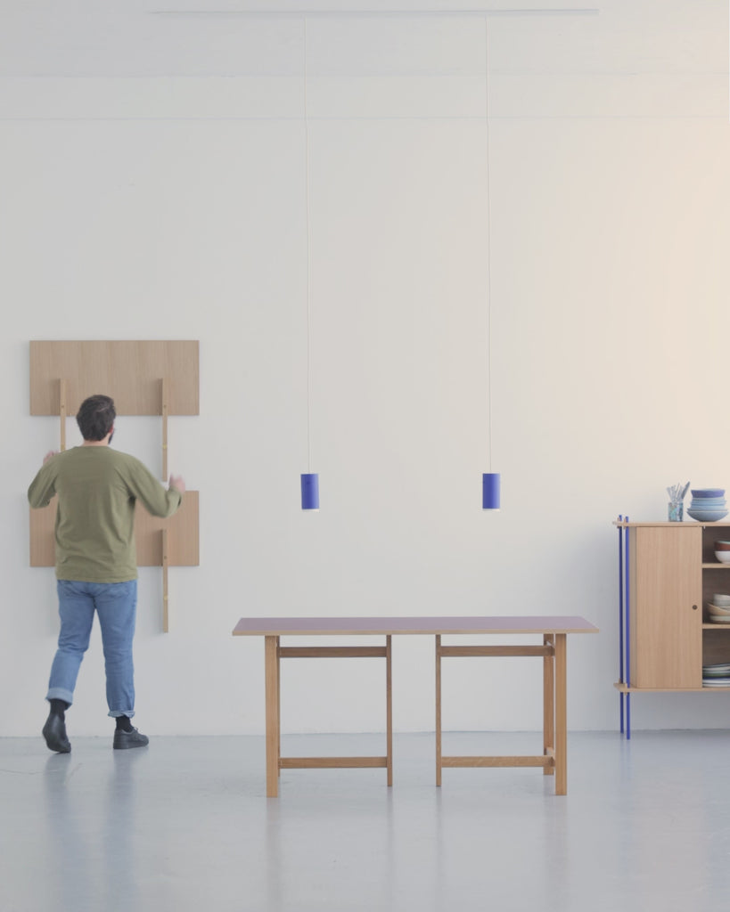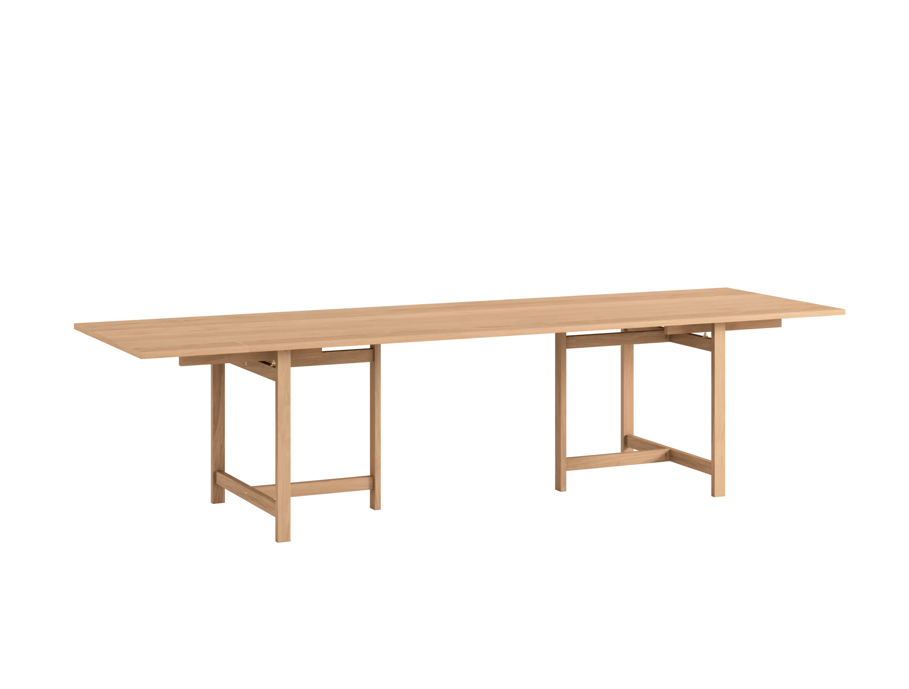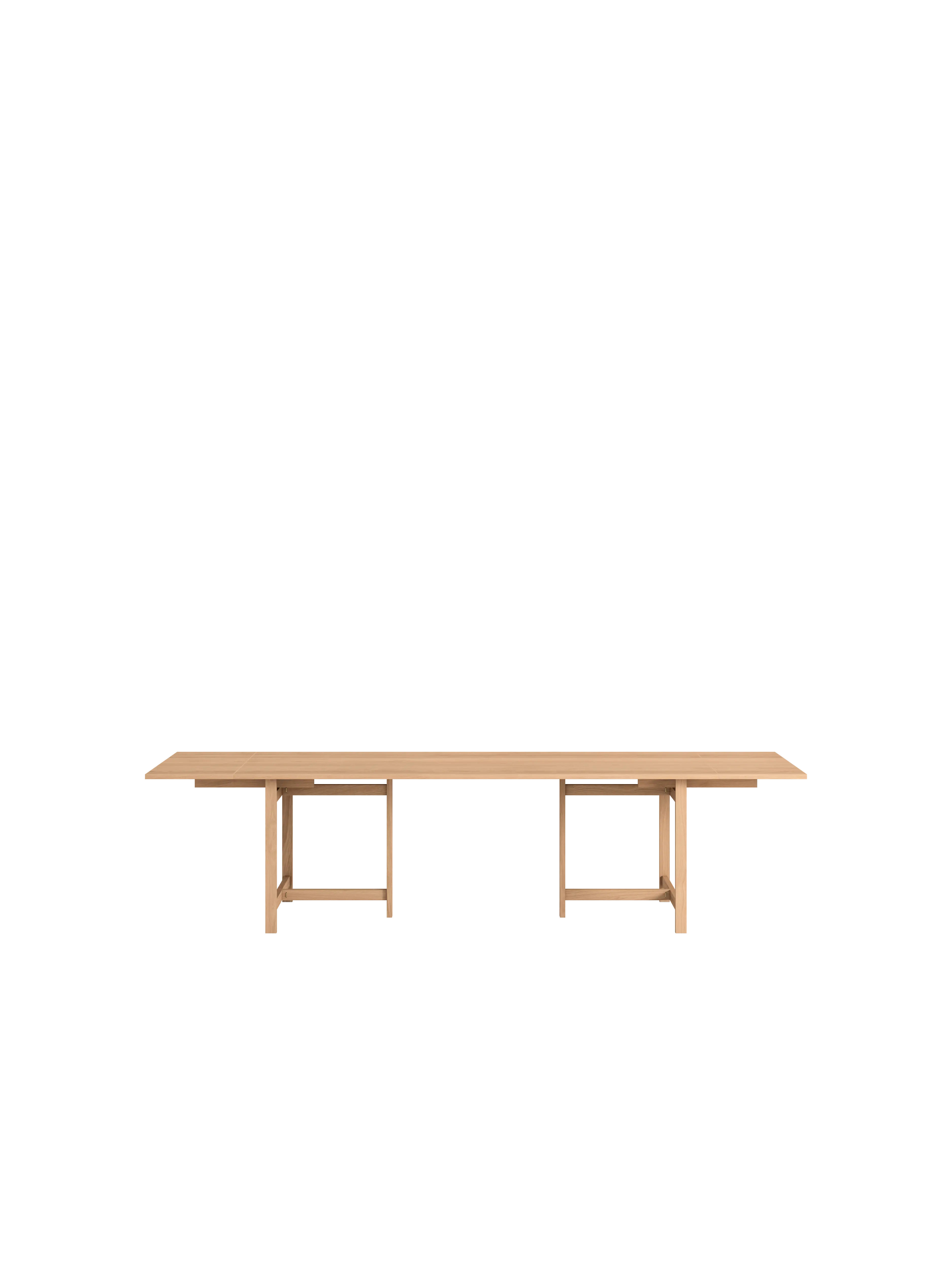 MOEBE 長方形ダイニング テーブルは、形状も構造もシンプルです。平らな状態で届き、2 つの T フレームに組み立てられ、テーブル トップが上に固定されています。テーブルは 2 つの長さ、4 つの仕上げから選択でき、ヨーロッパ製で FSC 認証を受けています。