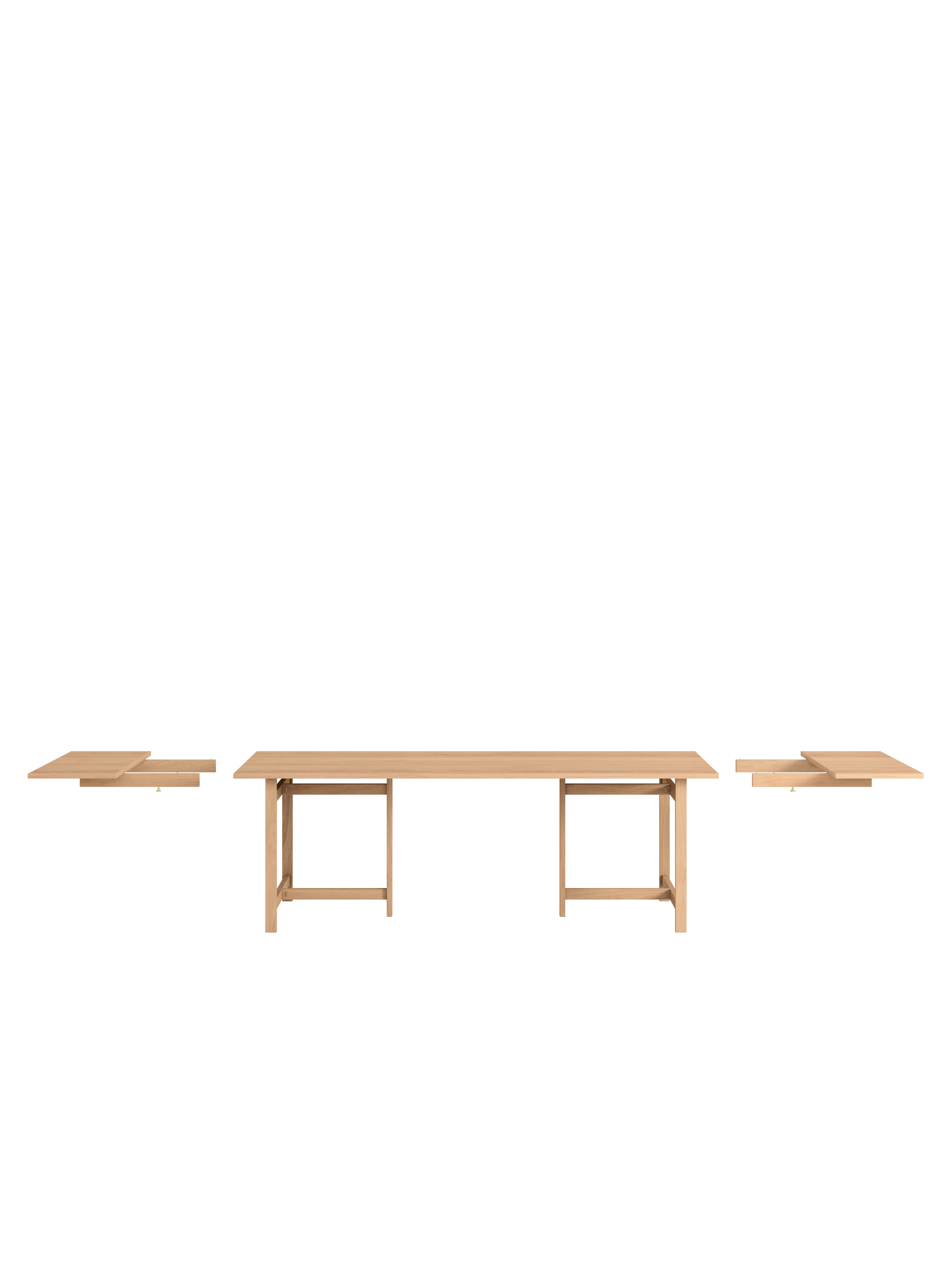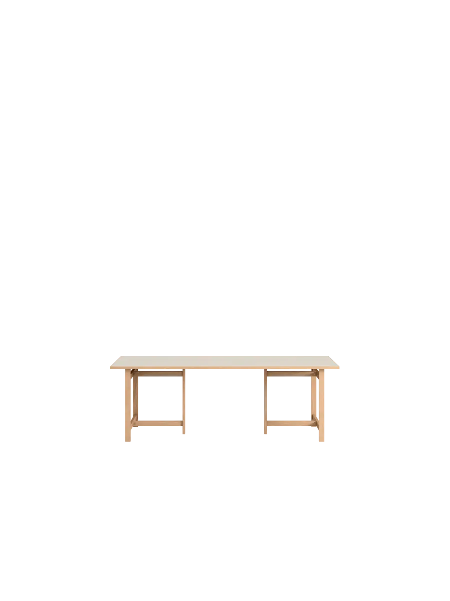 オークまたはカラーリノリウムからお選びください。シンプルでありながら頑丈なデザインで作られた MOEBE 長方形ダイニングテーブルは、どんなダイニングルームにもエレガントで実用的なアクセントになります。フラットパックでお届けし、テーブルトップを上に乗せて 2 つの T フレームに簡単に組み立てることができます。2 種類の長さと 4 種類の仕上げから選べるこのテーブルは、どんなスペースにもぴったりです。ヨーロッパで製造されており、持続可能な素材として FSC 認証を受けています。汎用性を高めるため、すべての仕上げにエクステンションが用意されており、ダイニング体験をカスタマイズできます。すべての仕上げにエクステンションが用意されています。