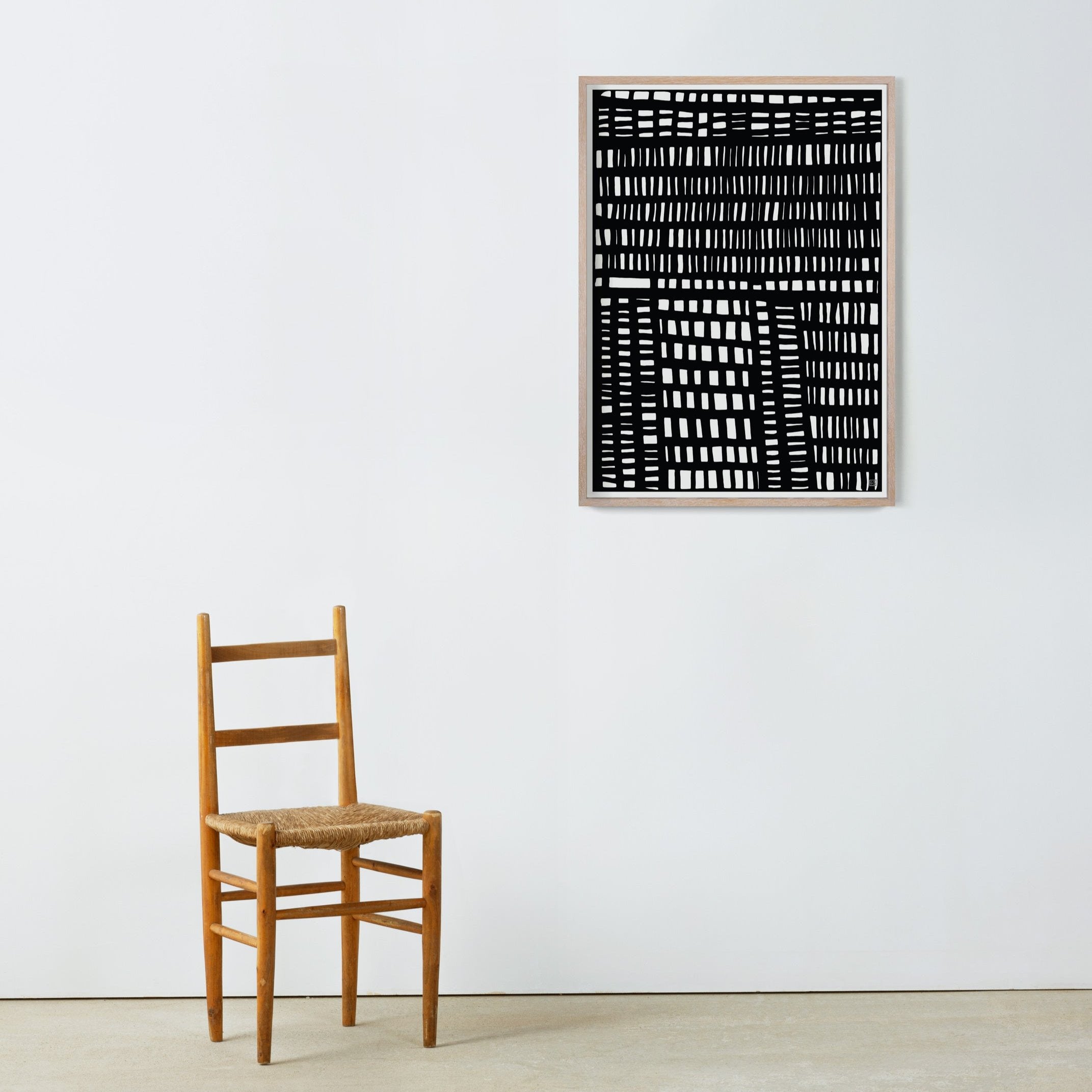 モノクロームの限定版プリント「B/W 01」は、1981 年に設立され、ジョージ・ソーデンナタリー・デュ・パスキエなどを含むミラノを拠点とするデザイン集団、メンフィス グループの大胆なポストモダニズムを表現しています