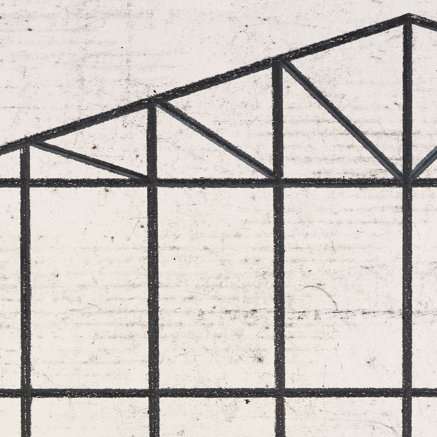 アーティストのフィリップ・ワイズベッカーによる「構造」シリーズは、建築構造の図面の大規模なポートフォリオです。20 世紀初頭の工業ビルの外壁に見られるものです。これらは、組み立てられた鋼鉄またはコンクリートの梁で作られ、レンガとモルタルの装置を支えています。これらの構造は、全体的な形状は似ているように見えますが、建物の安定性に必要な重量配分を確保するために、大きく異なります。