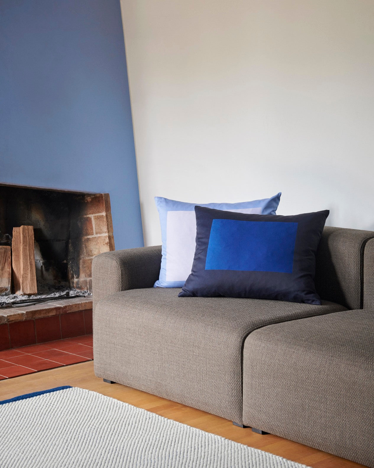 セルビア人のアナ・クラーシュがHAYのためにデザインしたラムクッションは、ツートンカラーのデザインが特徴的なシンプルながらもカラフルなクッションです。セルビア語で「フレーム」を意味するラムの対照的な長方形のブロックは、縁の周りにエレガントでクラシックなフレーム効果を生み出し、デザイナーはそれを大きな枕型のクッションに取り入れました。オーガニックコットンで作られ、羽毛とポリエステルを詰めた内側のクッションが、形状を保ちながら快適さと柔らかさを提供します。さまざまなデザインが揃ったラムクッションの力強くも洗練された美学は、どんなソファやベッドにもモダンで鮮やかなエッジを加えるのに使用できます。