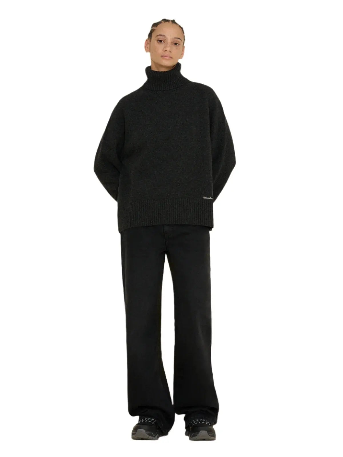 W. ラムウール ニット タートル ダークグレー
