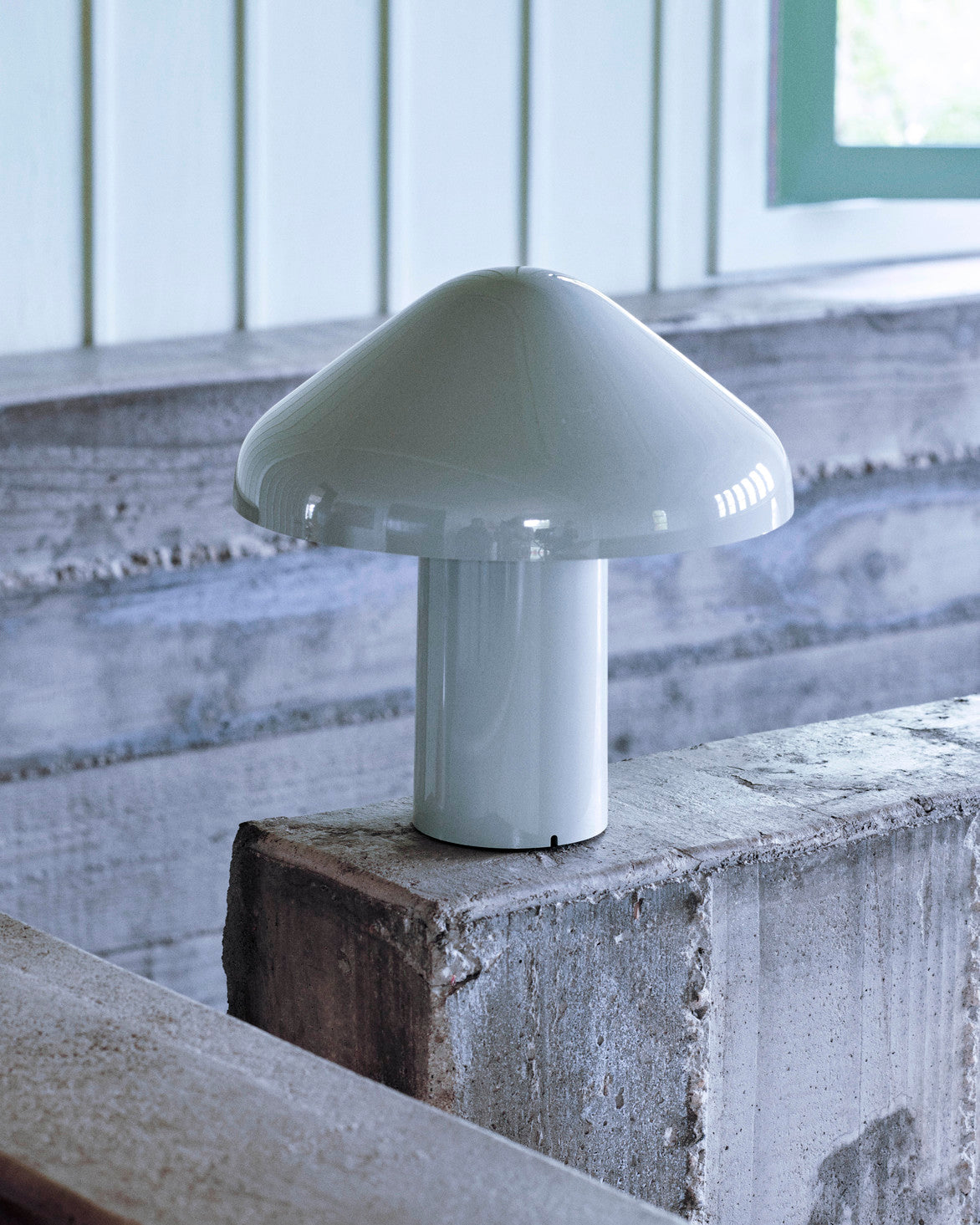 Pao コレクションのランプは、日本人デザイナー深澤直人とのエキサイティングなコラボレーションです。ランプのベースとシェードは、耐久性のあるポリカーボネート製で、滑らかで光沢のある仕上げになっています。ランプの光源はシェードの内側、オパール色のポリカーボネート製ディフューザーの後ろに隠されており、暖かく家庭的な輝きを放つ効率的な拡散ダウンライトを提供します。コンパクトな電池式設計により、ランプは家のさまざまな部屋に移動したり、庭やその他の屋外スペースに持ち込んだりできます。
