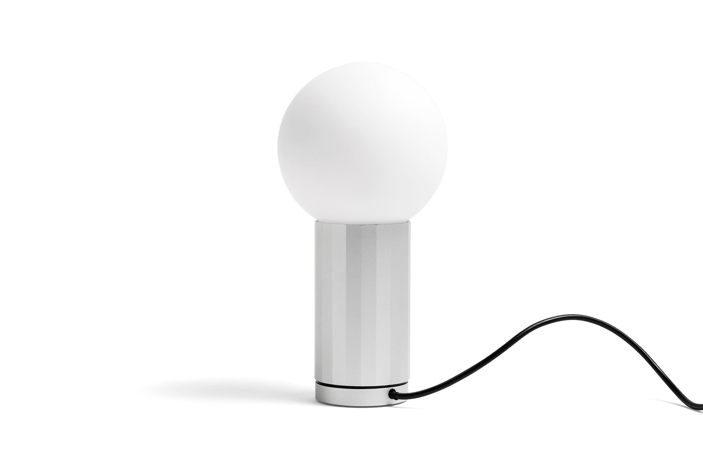 アルミニウムとオパールガラスで作られた美しく一体化したデザイン。ベースはファセット加工された円筒形で、ライトスイッチと球状のガラスディフューザーを固定するステムの両方の役割を果たします。ベースを時計回りに回すと LED ライトが点灯し、さらに回すとルーメン出力が増加します。この動きがデザインに組み込まれているため、ユーザーは直感的にライトを明るくしたり暗くしたりできます。
