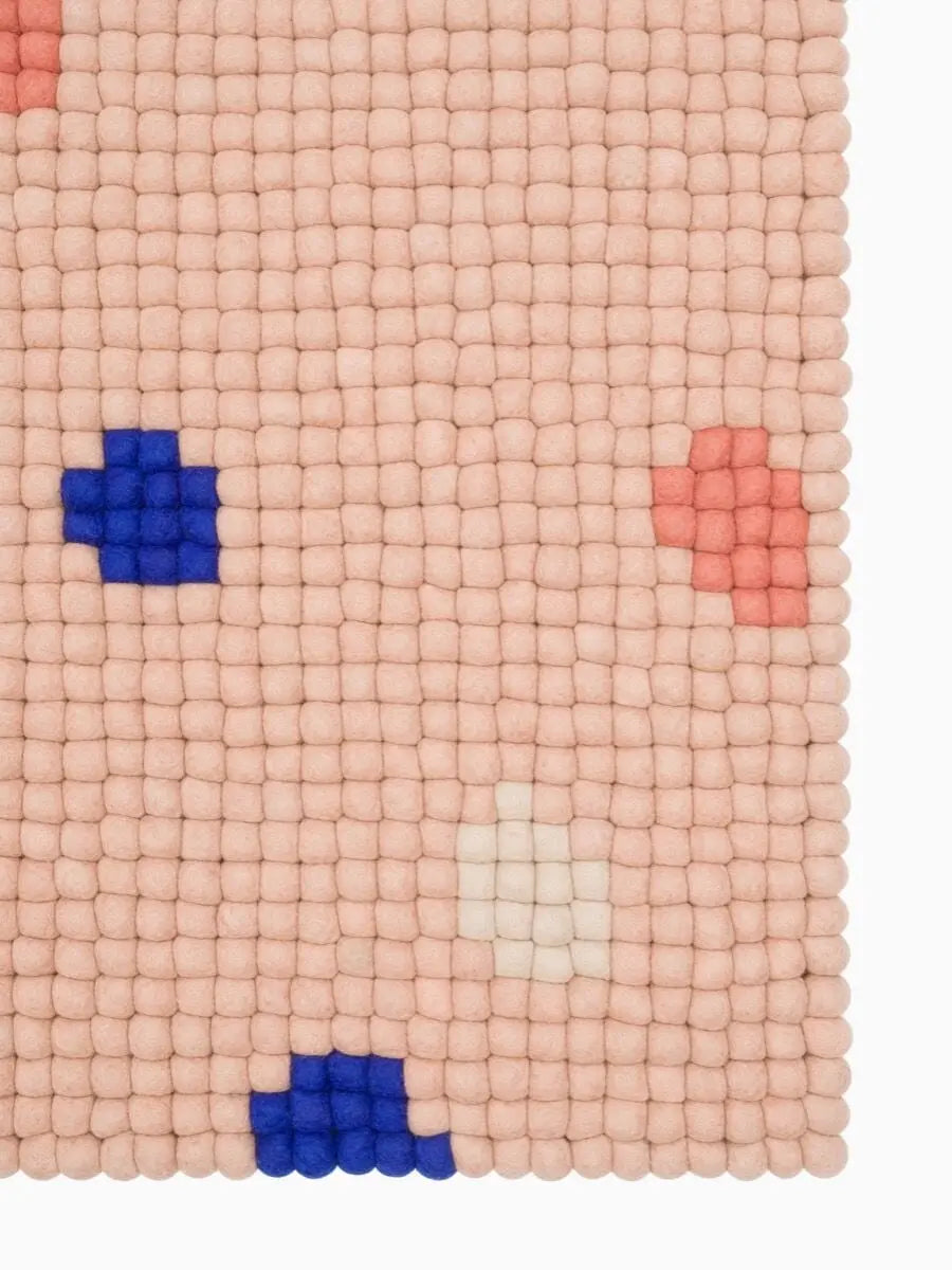 純粋なバージンウールで作られた正方形のピンクのフェルトボールカーペット。