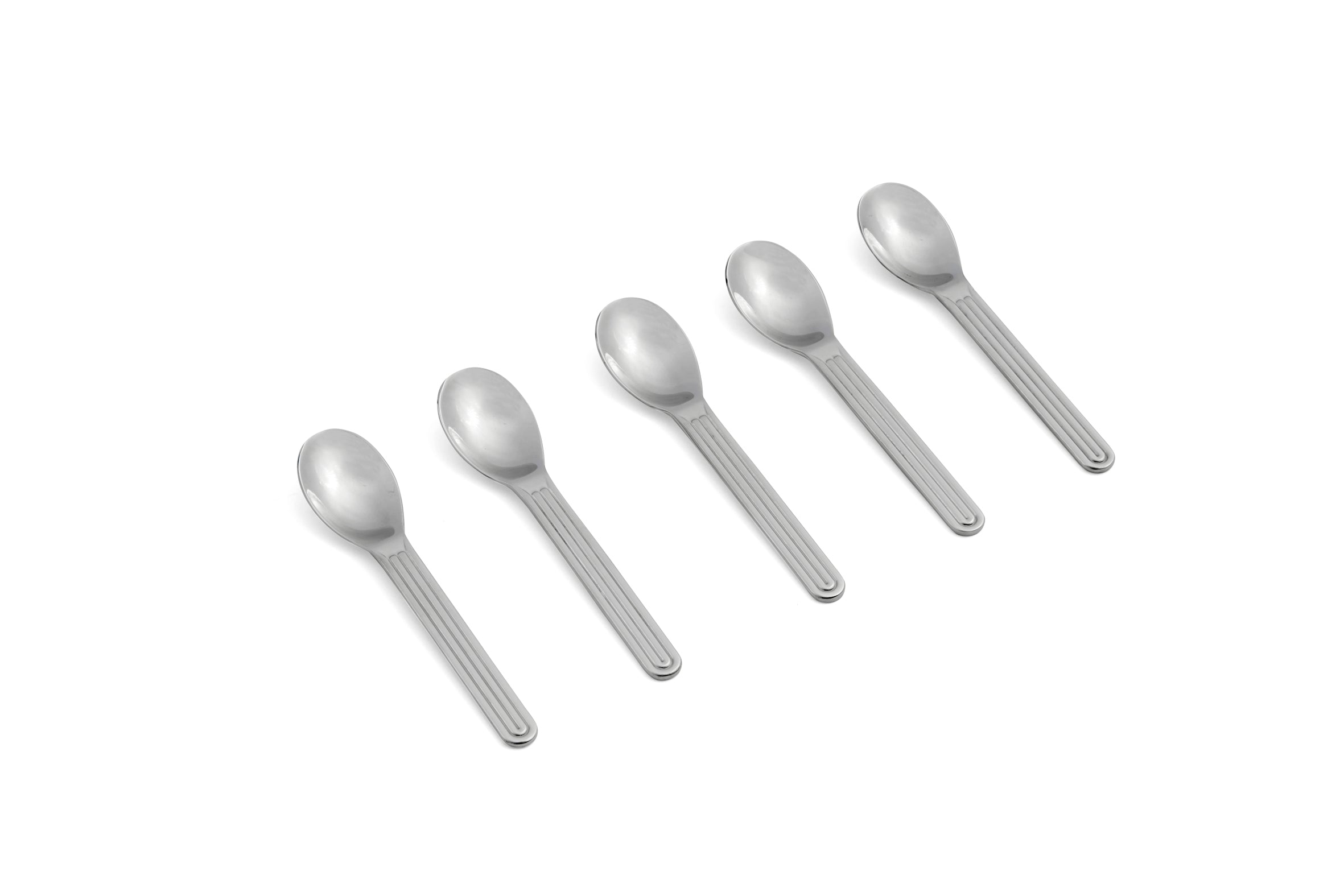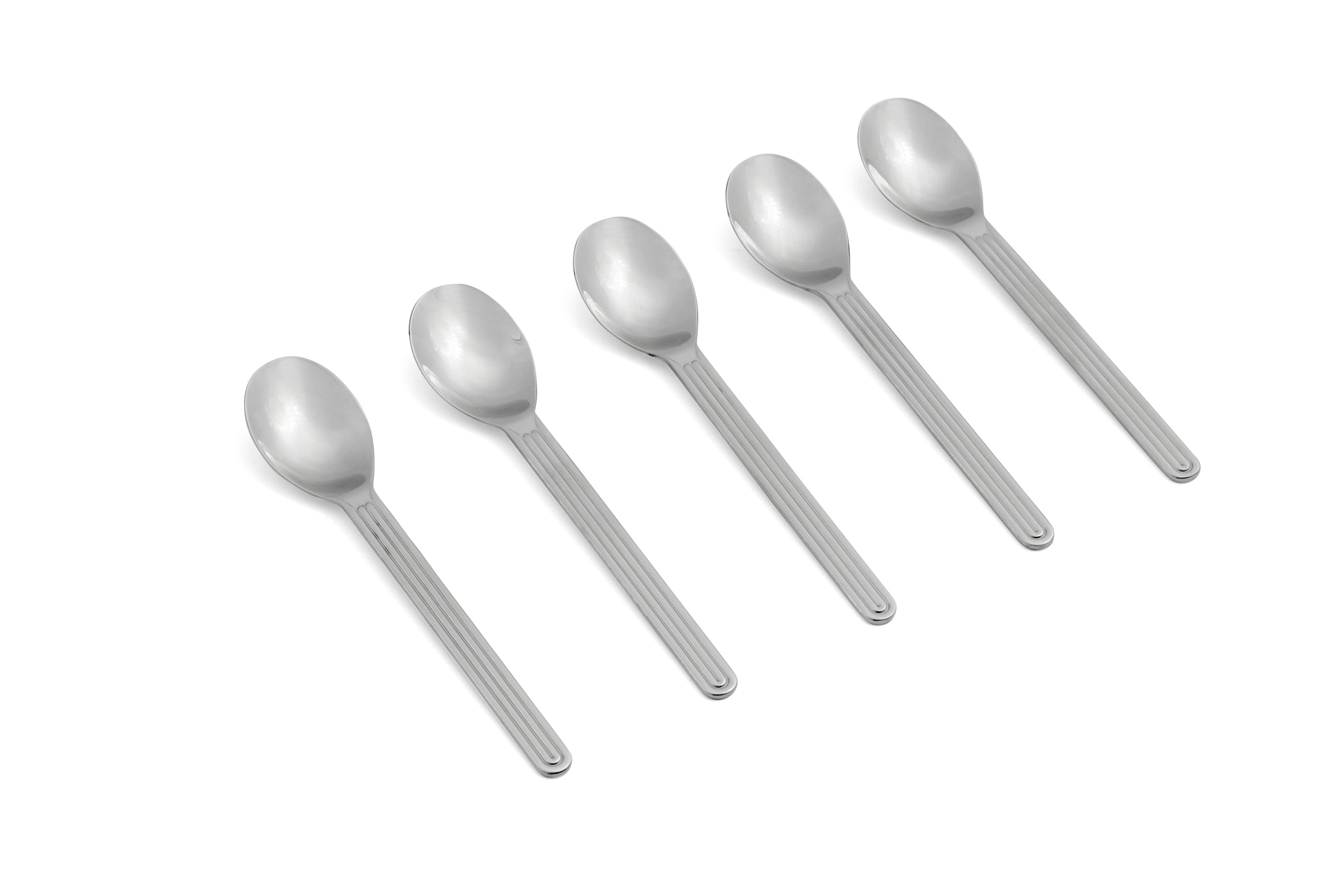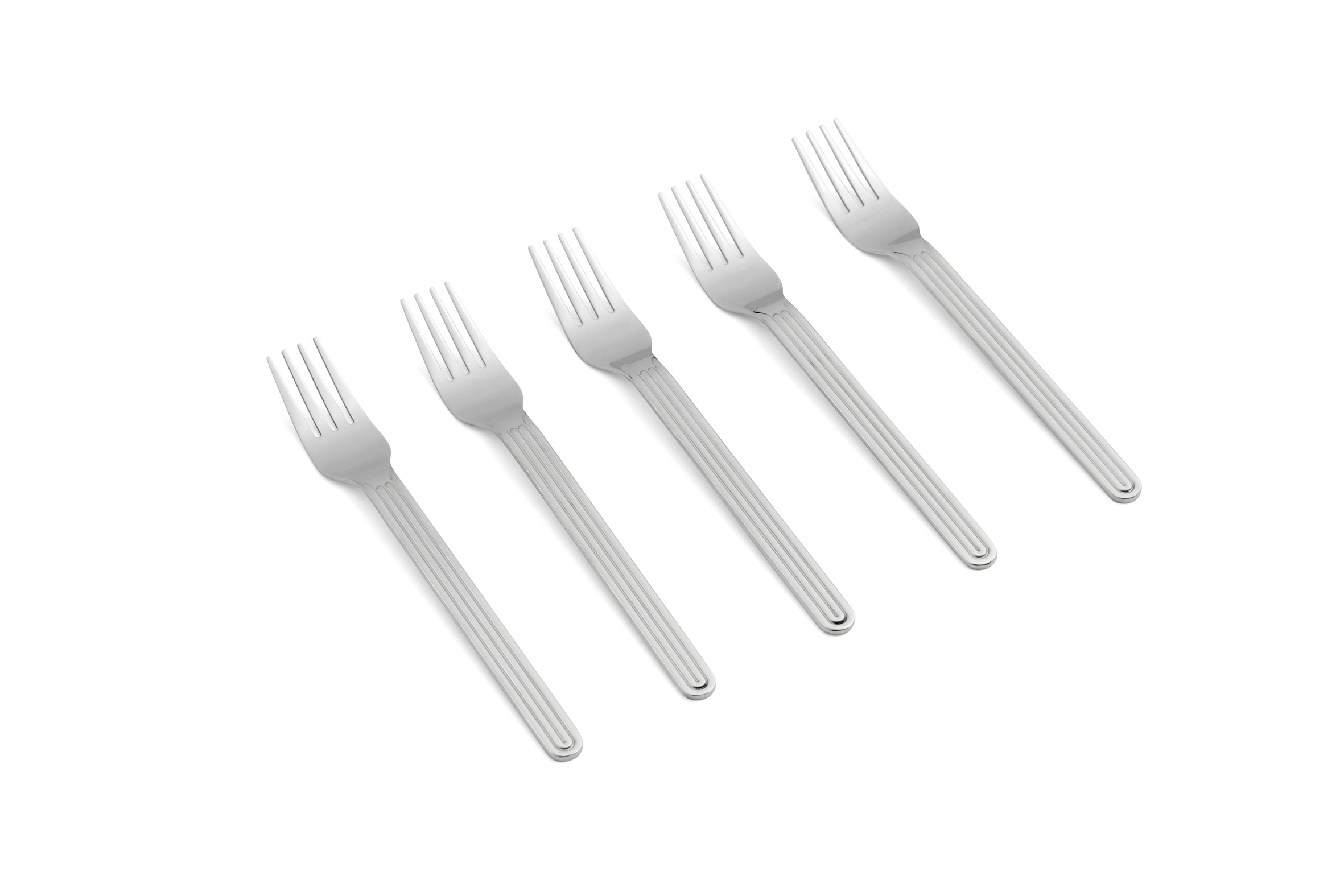 スイスのデザインスタジオ BIG-GAME がデザインした Sunday は、ナイフ、フォーク、デザートスプーン、ティースプーンからなる、溝付きハンドルを備えたカトラリー シリーズです。5 個セットです。