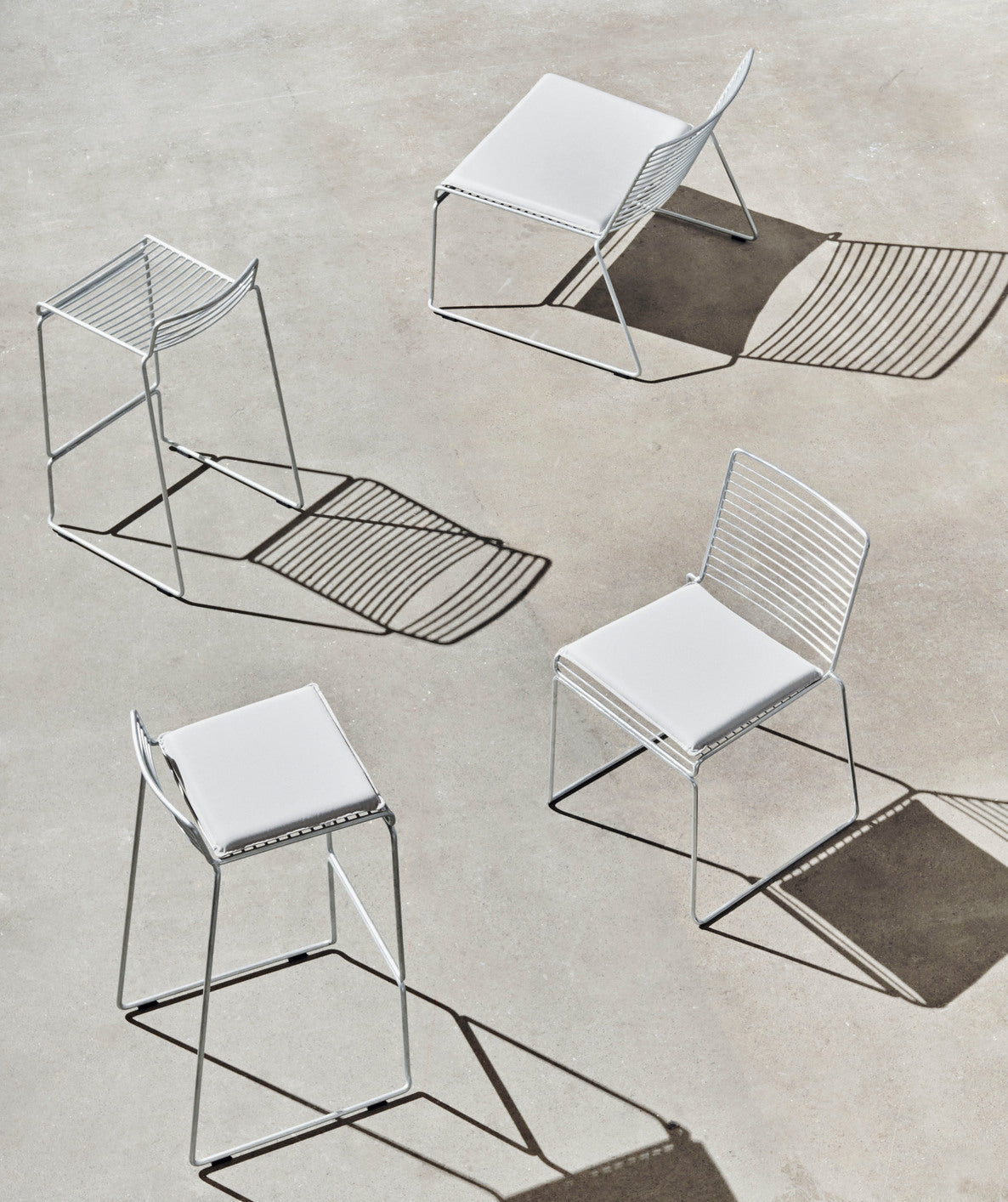 Hee チェア コレクションにさらなる快適さと機能性を加える Hee クッションは、Hee ダイニング チェア、Hee ラウンジ チェア、Hee バースツールのシートにフィットするさまざまなサイズで提供されます。薄く、わずかにパッドが入ったクッションの底には滑り止め素材が付いており、しっかりと固定されます。テフロン加工の生地で作られており、防水性と防汚性に優れたクッションは 2 色展開で、一年中使用できます。