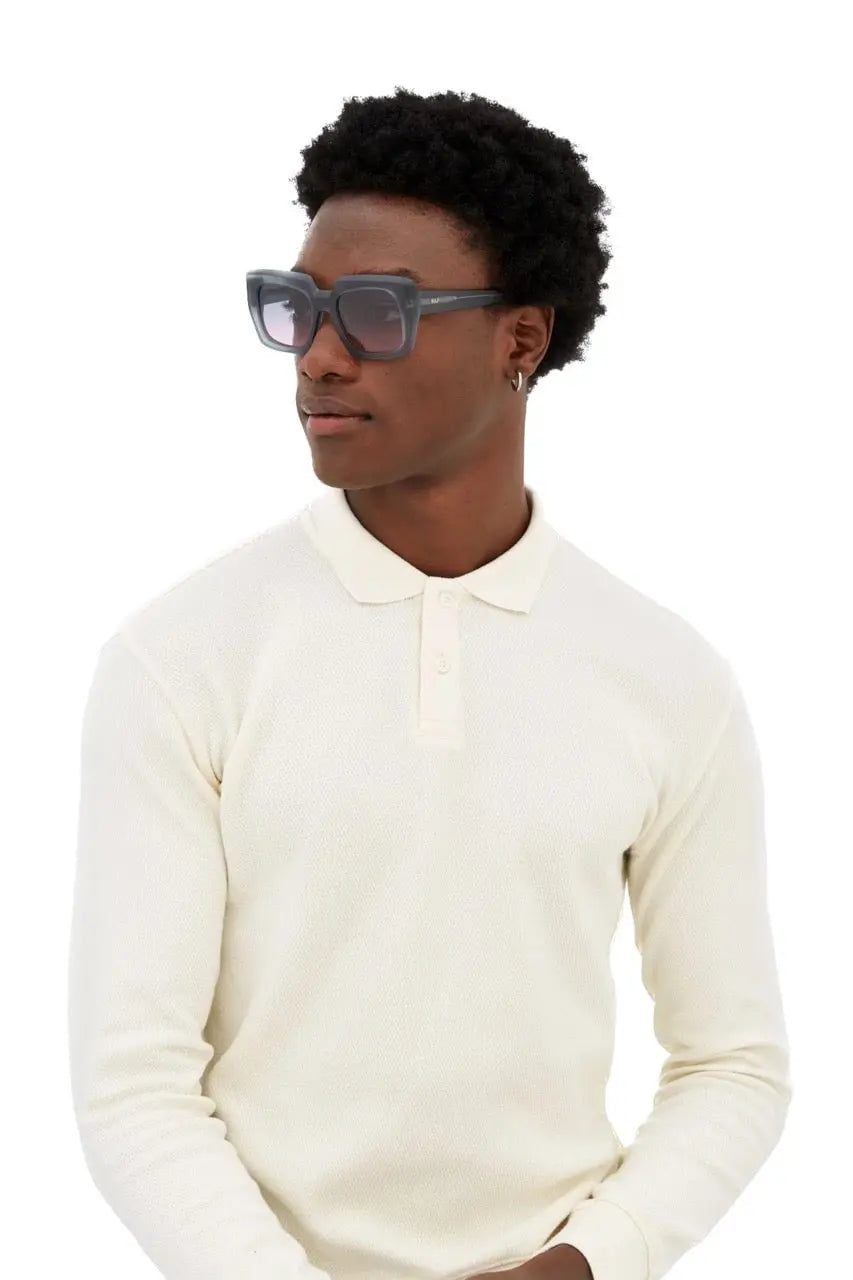 Piscina は、ユニークな幾何学的なデザイン、目立つ特大レンズ、彫刻された厚いリムが特徴の、存在感のあるアイウェアです。このモデルは、70 年代後半の行き過ぎた美学にインスピレーションを得て、より最先端の現代的な感性に合わせて再解釈されています。ユニセックスなデザインの Piscina は、上部のラインに太いリムがあり、斜めのエレガントな輪郭を形成するように彫り込まれています。大胆なテンプルと太いノーズブリッジが個性あふれるモデルを完成させます。このバージョンは、グレーブルーの色合いのマットアセテートに、色褪せたパープルのレンズが特徴です。