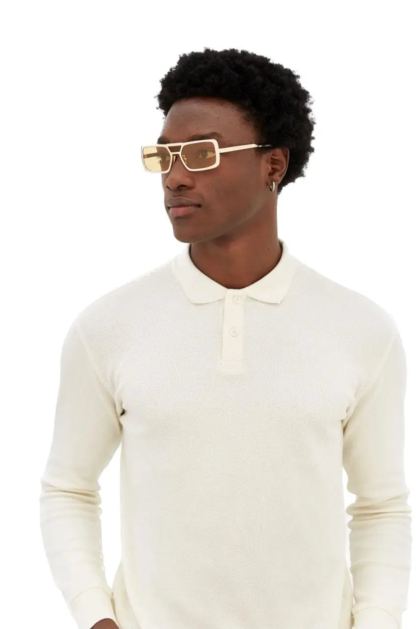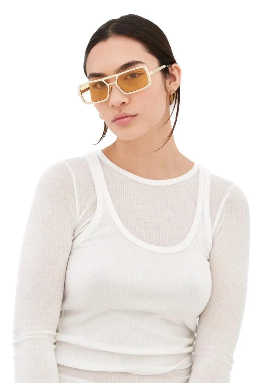 Stereo は、そのユニークなデザイン、構造、洗練された仕上げにより、メタル デザインの概念を高めることに取り組んでいます。このモデルは、時代を超越したメタル サングラスのレトロで超未来的な解釈として考案され、顕著なダブル ノーズ ブリッジと厚いリムが特徴です。その幅広で特大のジオメトリは、新鮮で遊び心のあるクロームメッキ仕上げによって強調されています。光沢のあるゴールドポリッシュとマスタードイエローのレンズを組み合わせて、トーンオントーンのレトロなヘイズの表現を実現しています。