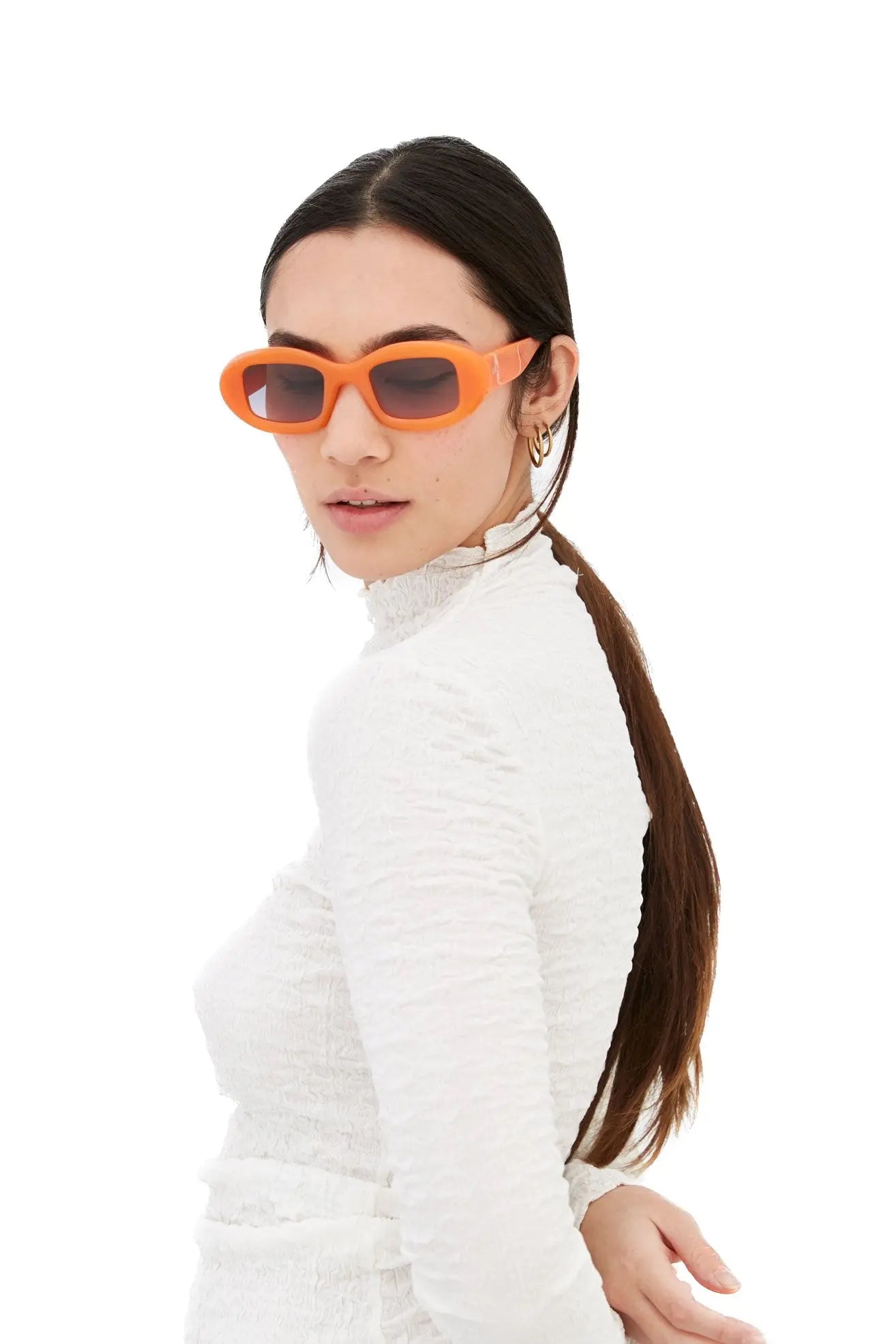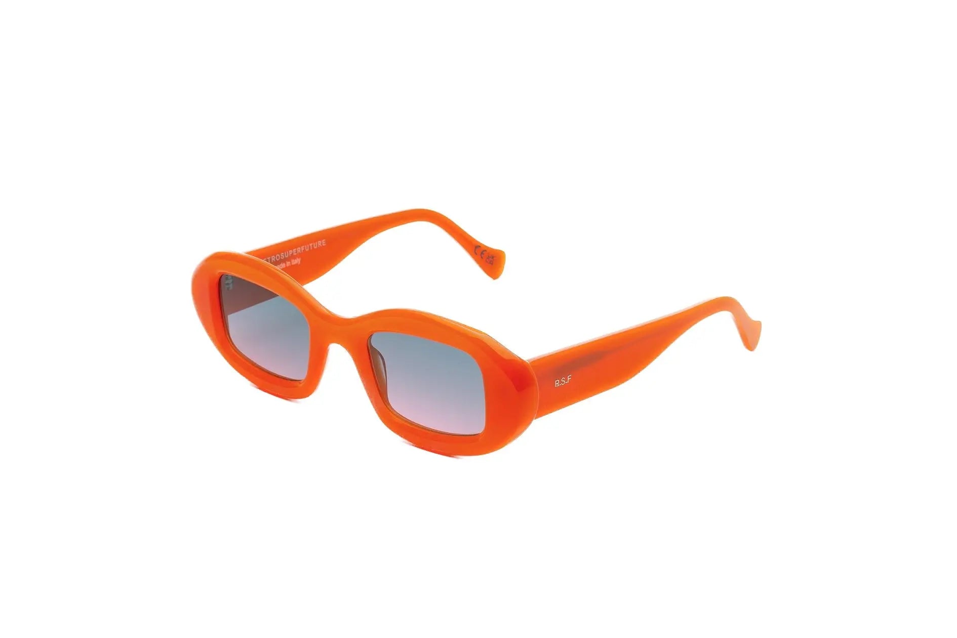 コントラストのある幾何学模様と洗練されたデザインがこのモダンなアイコンを特徴づけています。Tutto は幅広で水平な形状で、四角いレンズを囲むティックと曲線のリムが特徴です。遊び心がありながらも非常にスタイリッシュなシルエットとして考案された Tutto は、1960 年代の女性らしい形の時代を超えた魅力と、グランジな現代的なユニセックスのエッジを融合させています。このバージョンの Tutto は、大胆なオレンジ色のアセテートと紫色の退色レンズが特徴です。