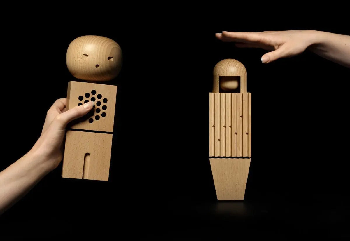 ご覧のとおり、8 体の木製の人形が、合唱クラシックのレパートリーでセレナーデを奏でたり、MIDI 経由で独自のオリジナル曲を演奏したりするために作られています。各メンバーは独自の特徴的な声域を持っています。1 人でダイナミックなソロを歌い、一緒になって臨場感あふれるアカペラ コンサートを演奏します。この合唱団は、オリジナルのアブソルート合唱団、ティーンエイジ エンジニアリングの最初のプロジェクトからインスピレーションを得ています。