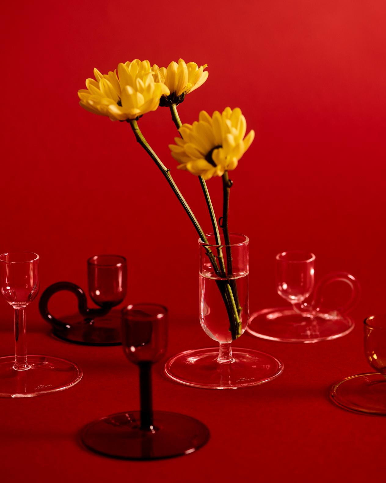 STUDIO 0405 の Nikolaj Mentze が HAY のためにデザインした Tiny Vase は、透明なホウケイ酸ガラスを使用したエレガントな花瓶です。美しくシンプルなデザインが特徴で、小さなサイズの花瓶なので、テーブルや棚、家の他の場所に 1 本の茎や素朴なフラワー アレンジメントを飾るのに最適です。