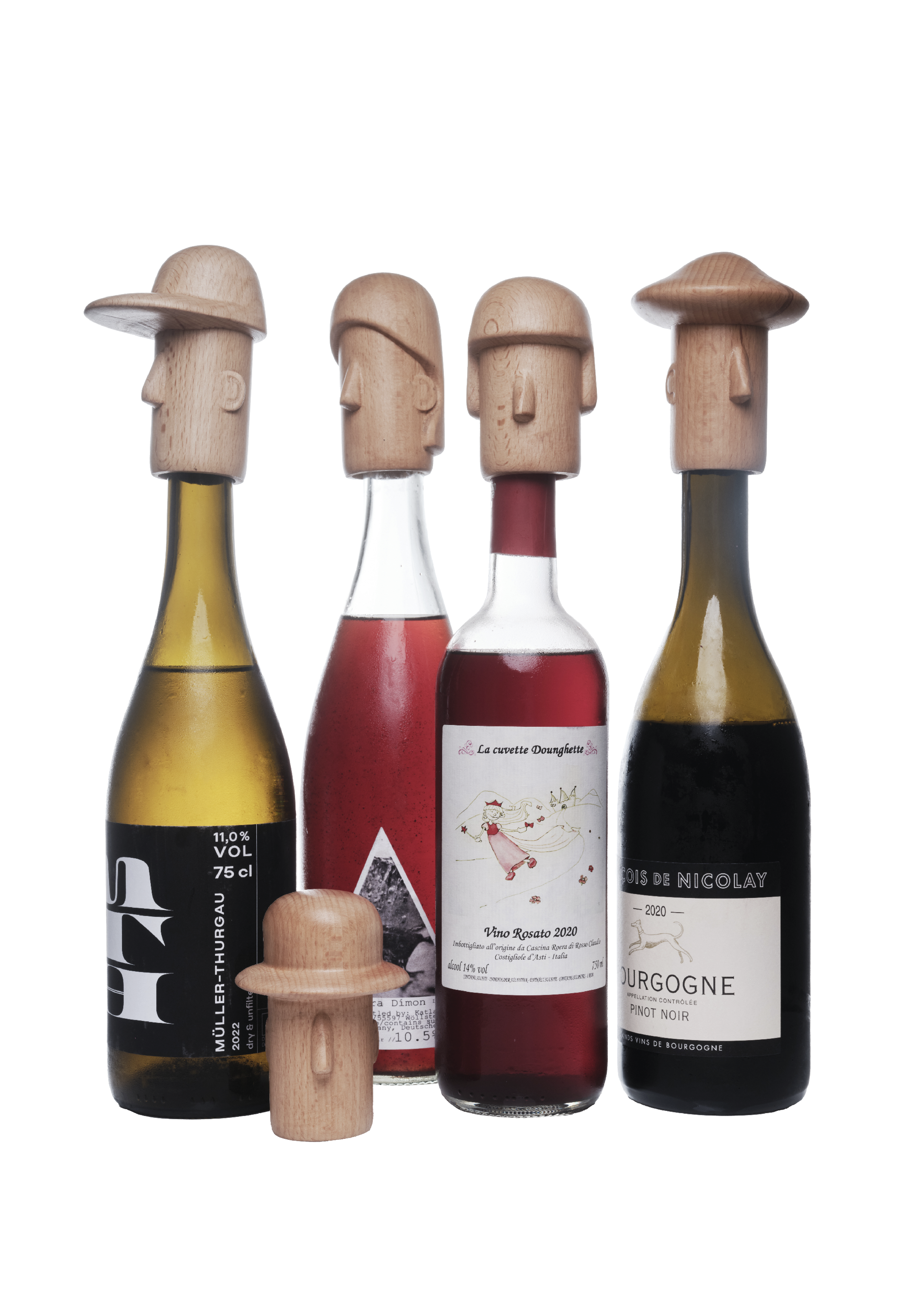 ワインボトル「バディ」は、ブナ材を削り出したボトルストッパーのヘッドシリーズです。実用性と温かみを兼ね備えたこれらのボトルストッパーは、シンプルさの中にも芸術性と魅力が巧みに融合しています。セットで購入することも、別々に購入することもできます。ご自宅用に、あるいはワイン好きの友人へのプレゼントとして、想像力とカリスマ的な実用性を兼ね備えたこれらのボトルストッパーは、空間を一変させます。