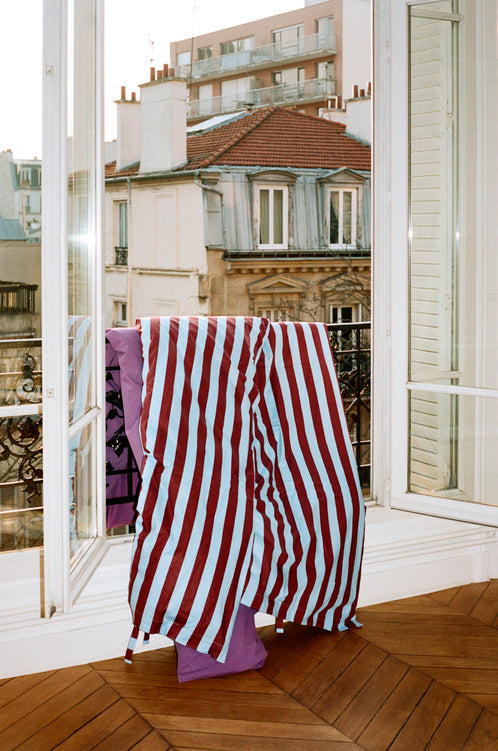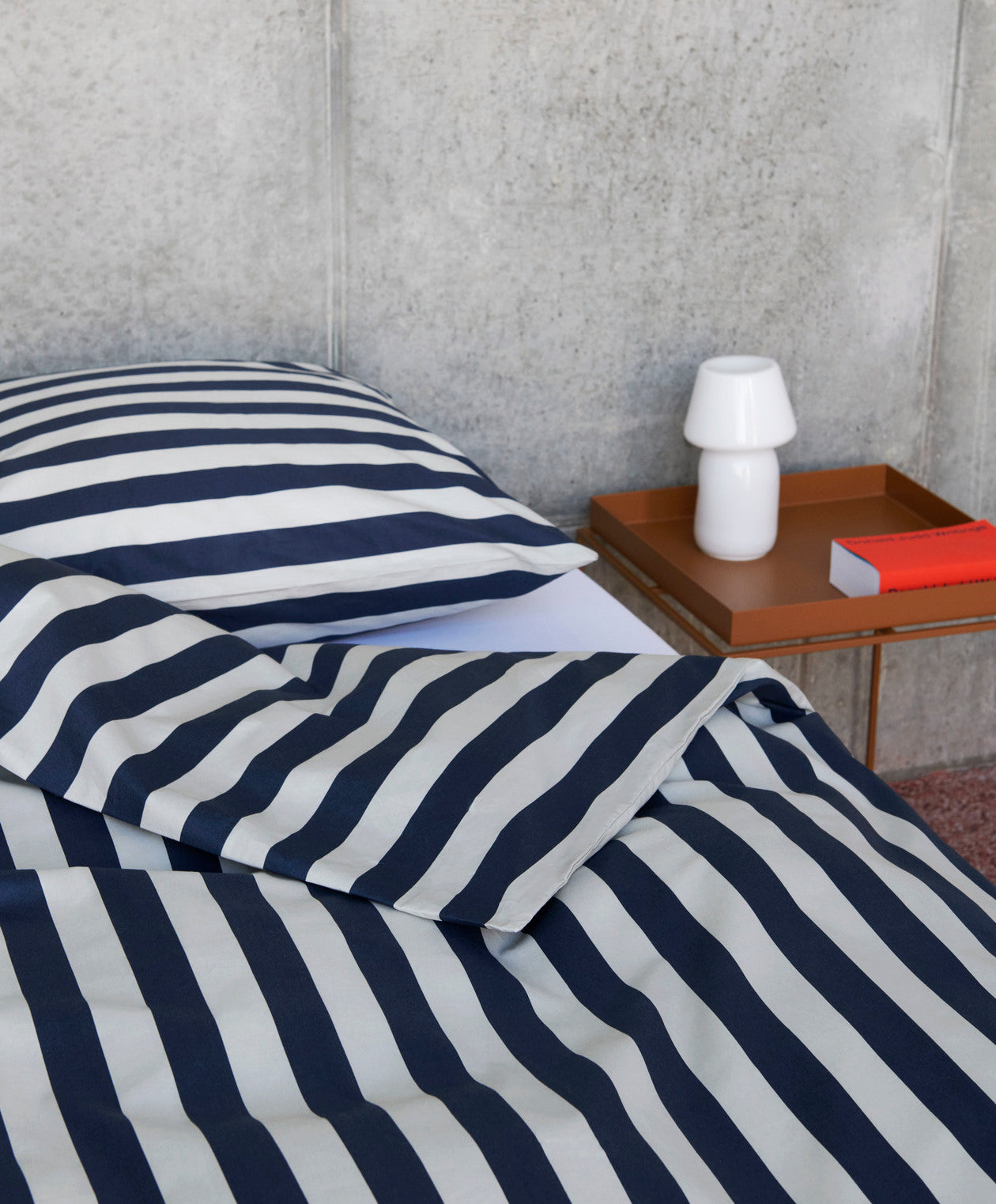 アマンダ・ボーバーグがデザインした、ストライプ模様の純綿で作られた HAY の Été ベッドリネンは、砂浜と新鮮な海の空気のある暑い夏の日々を思い起こさせます。