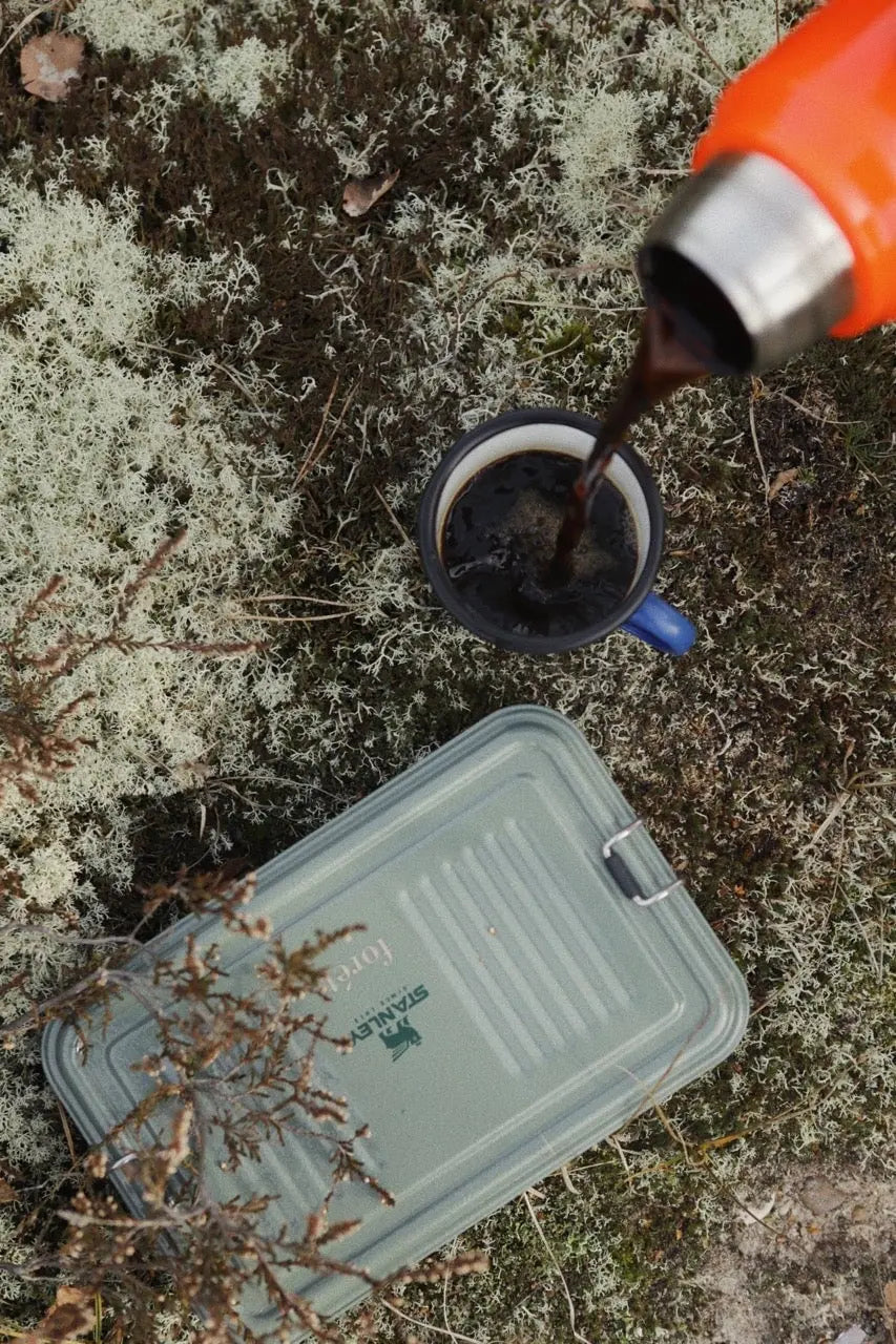 ご紹介するのは、forét × Stanley ボトルです。真空断熱材を備えたステンレススチール製で、飲み物を20時間温かくまたは冷たく保ち、または冷凍して4日間保ちます。スタンレーのボトルは、レベル 5 のハリケーン、猛スピードの弾丸、4000 フィートの高さからの落下に耐え、非常に耐久性があると主張されています。この耐久性と細かいディテールの組み合わせにより、日常生活や自然の探索に最適です。真空断熱により、飲み物を 20 時間温かくまたは冷たく保ちます。18/8 ステンレス鋼は錆びません。当然 BPA フリー。断熱蓋は 8 オンス/236 mL カップとしても使えます0.75 LØ: 8,9 / H: 30 cm漏れ防止で完全に収納可能。