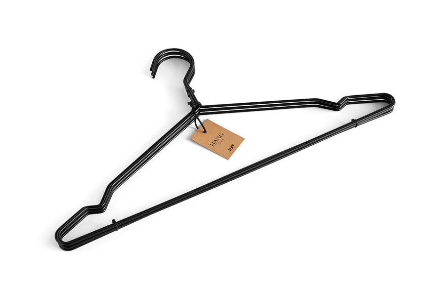 Hang は、クローゼット内の場所を取らないミニマルな金属製ハンガーで、同じスペースにより多くの衣類を収納できます。5 個セットです。