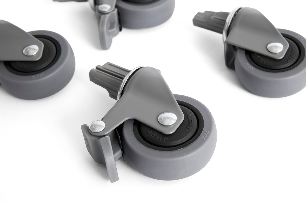 HAY カラー クレートと併用するように設計されたカラー クレート ホイールは、コンテナを持ち上げて移動しやすくするだけでなく、機能と保管の可能性も広げます。シンプルな押し込み式のデザインと 2 つのストッパー ホイールを備えたカラー クレート ホイールは、取り付けが簡単で、効果的に使用できます。