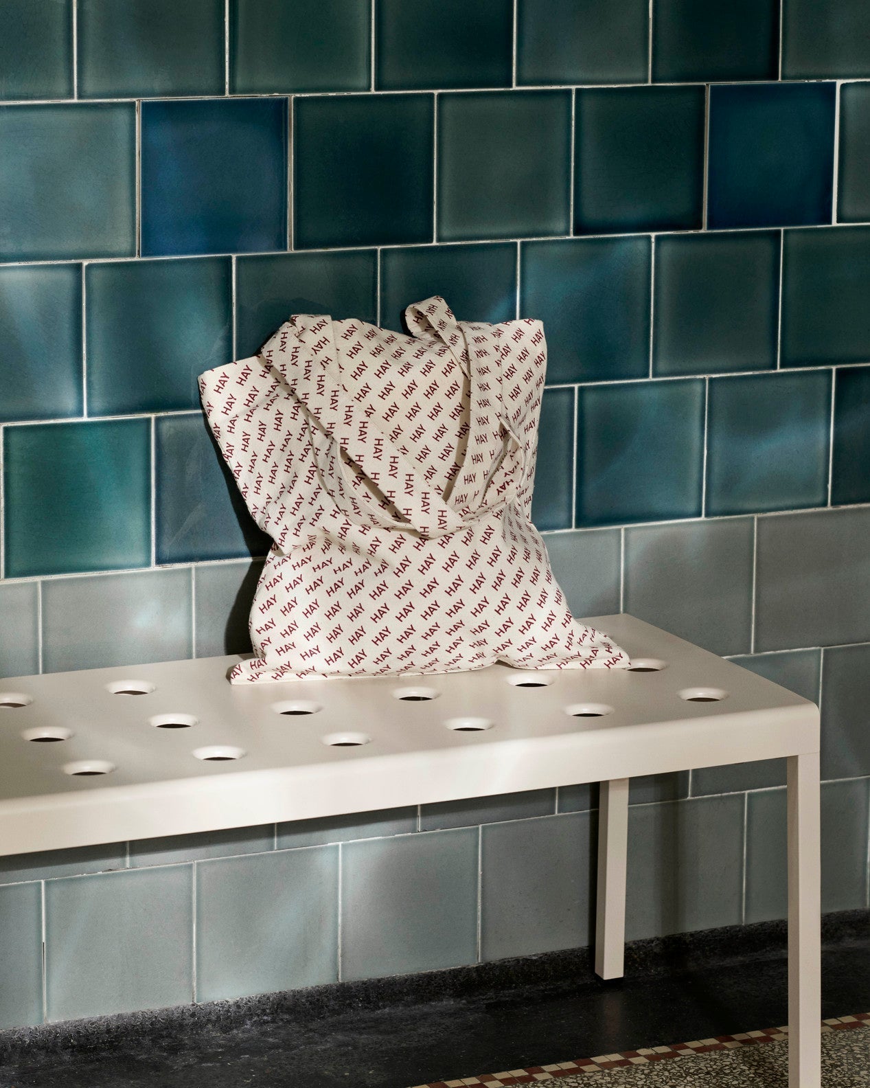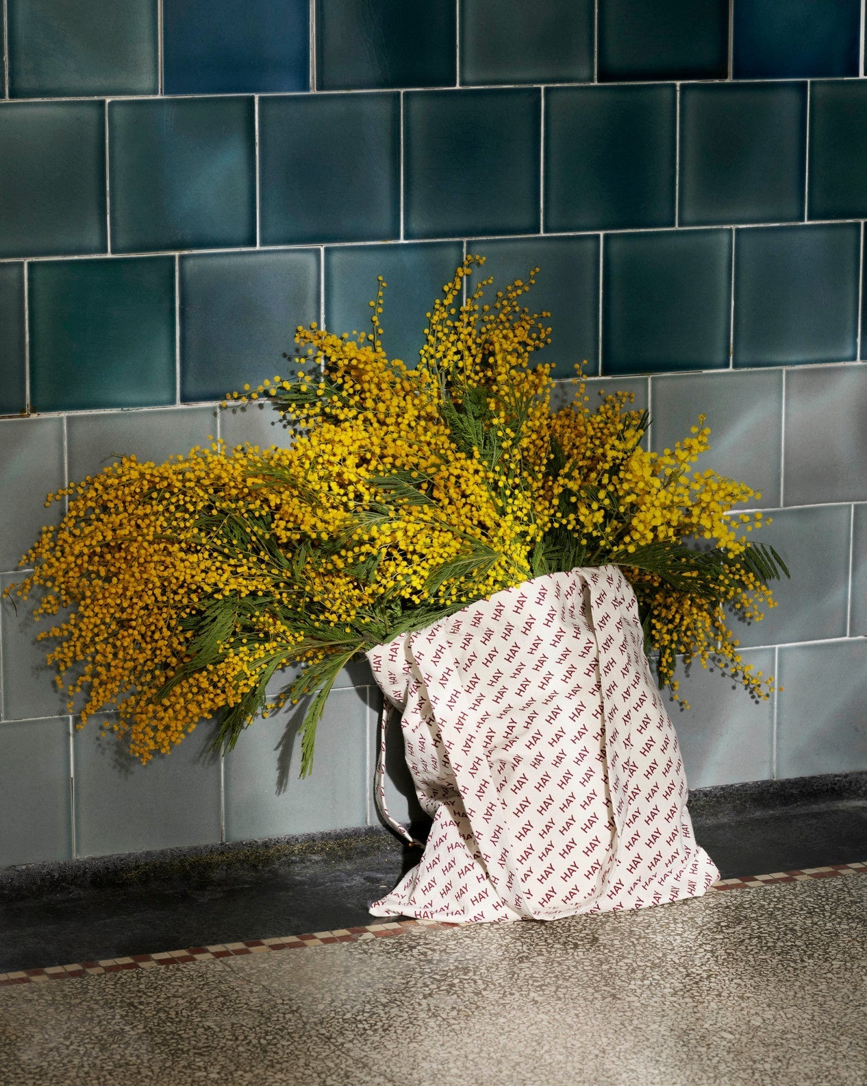 HAY ロゴ トートバッグは、長いハンドルと全体に小さな HAY ロゴがプリントされており、機能的で個性的なショッピングバッグとなっています。