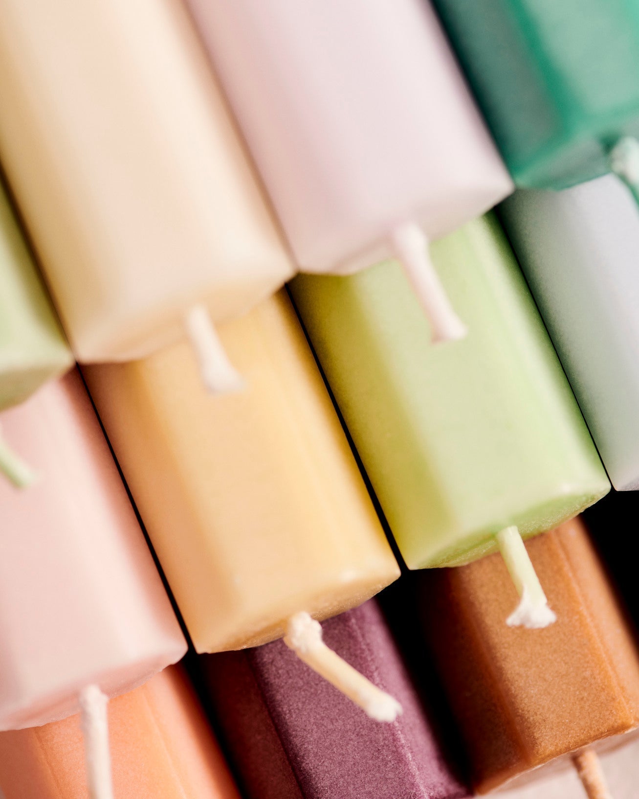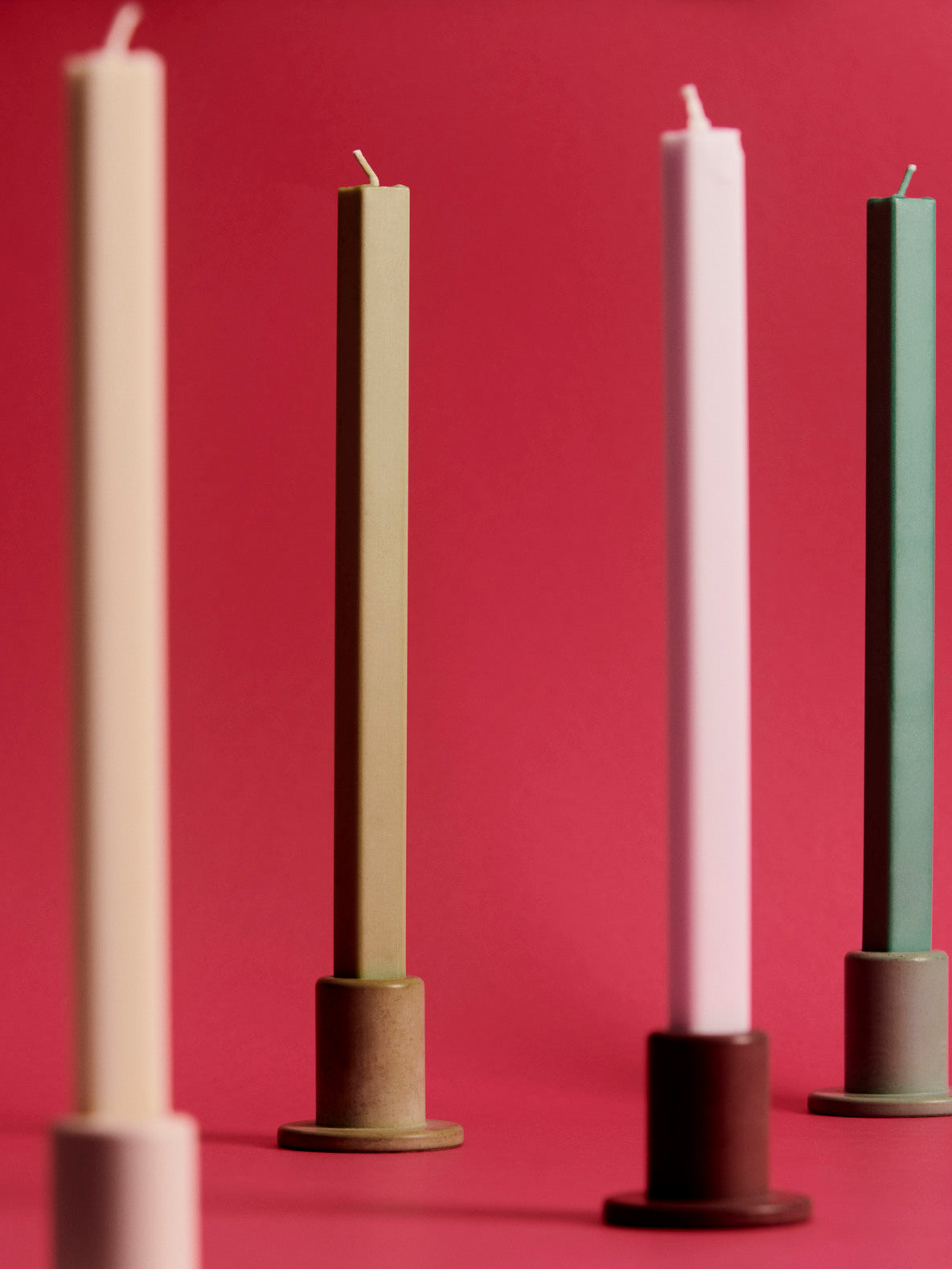 エレガントな六角形とマット仕上げが特徴のこれらのカラフルなキャンドルは、まとめて置いても、個別に置いても同じように美しく見えるように設計されています。キャンドルは Nordic Swan エコラベル認定を受けており、燃焼時間は約 7 時間です。