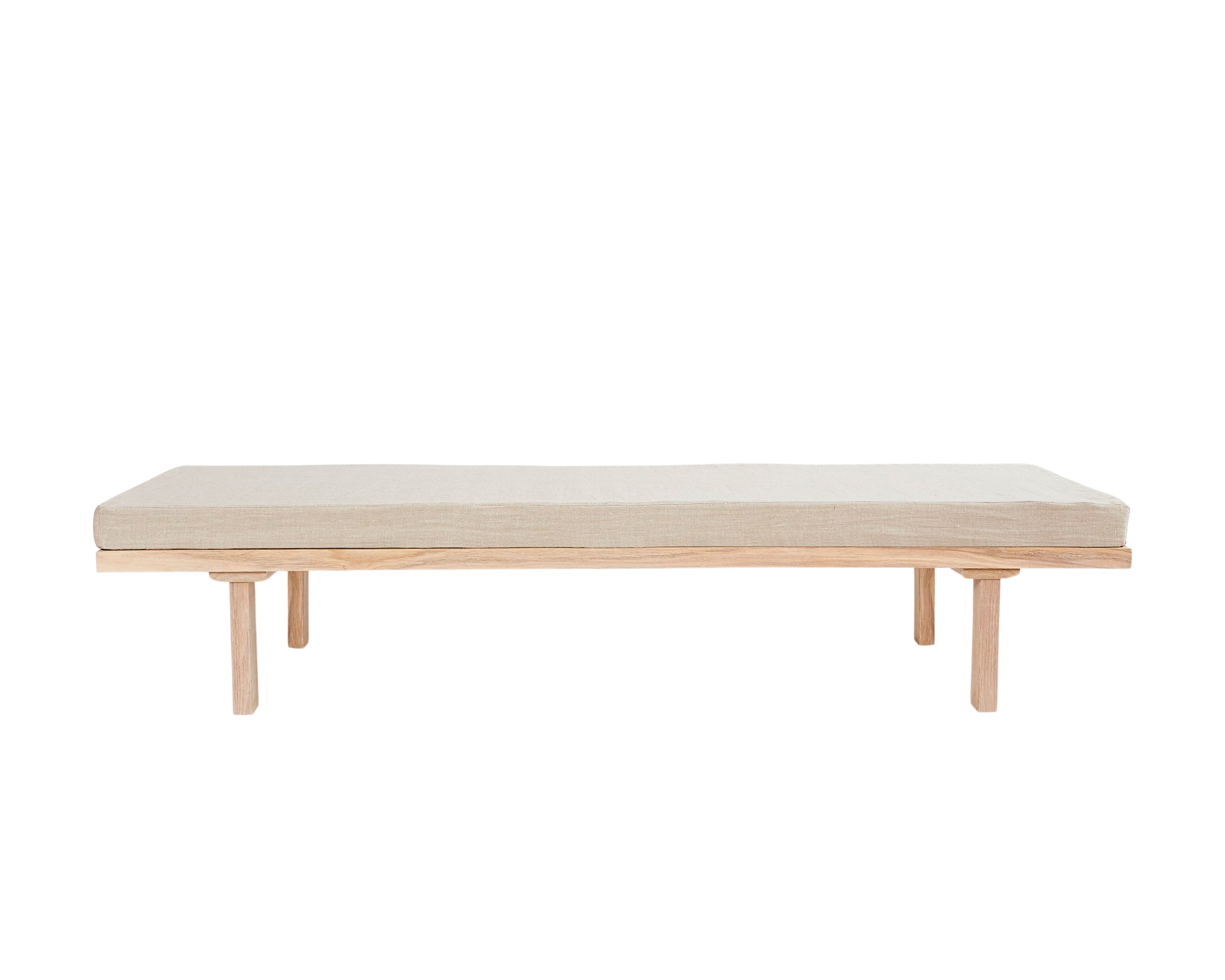 KR-180デイベッドは、キム・リチャードがデザインした家具です。オイル仕上げのオーク材フレームと柔らかなリネンキャンバス生地に、高密度フォームマットレスが快適な座り心地を提供します。組み立てが簡単な明るい色の木製デイベッドは、リビングルームや機能的なゲストベッドとして最適です。