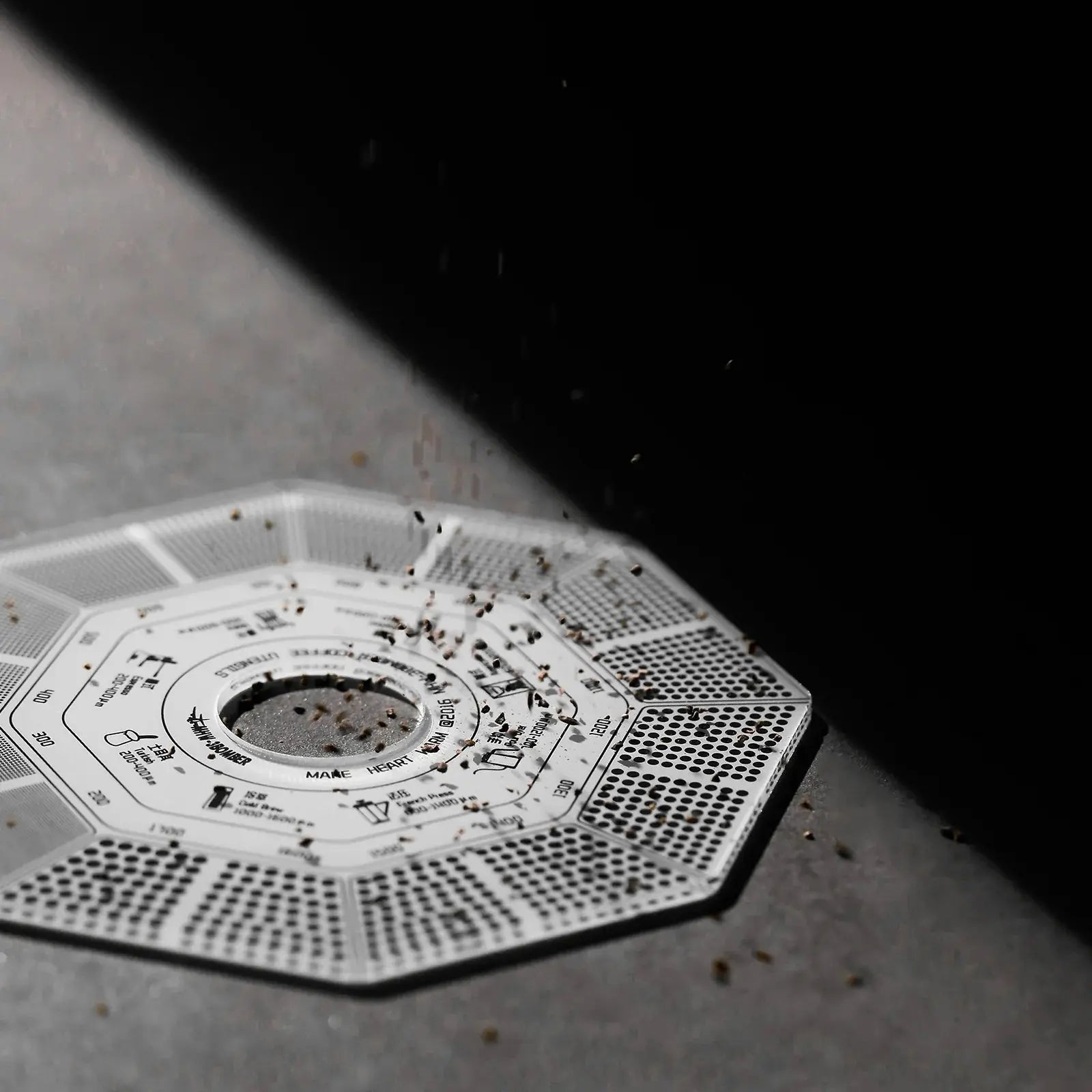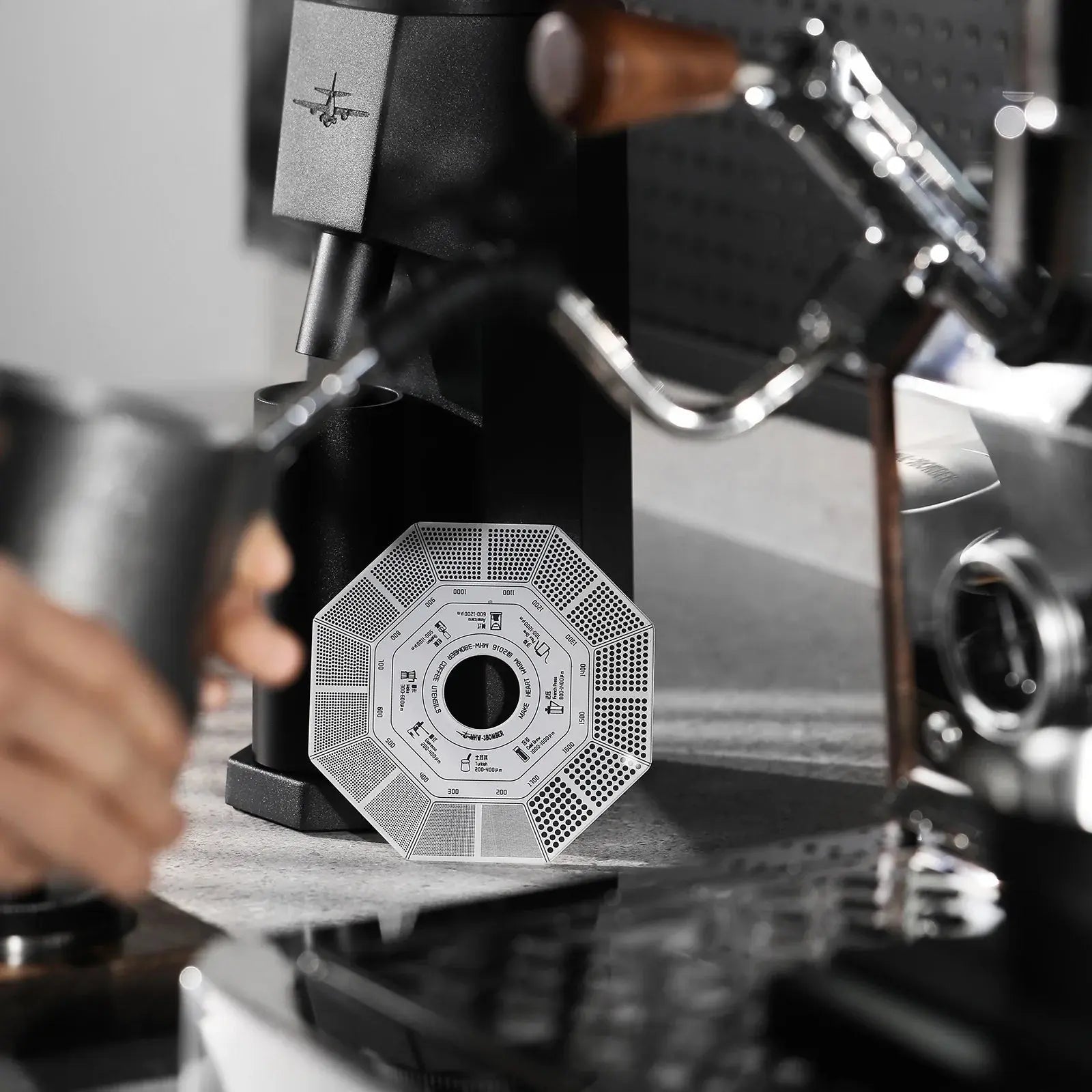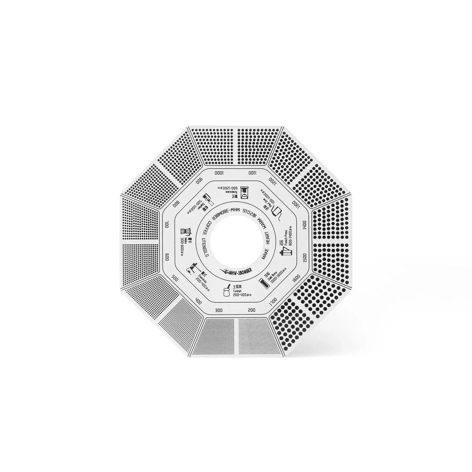 測定ツールの使い方は簡単です。挽いたコーヒー粉をカードの視覚的な仕様と比較するだけです。こうすることで、豆の正しい挽き具合を確実に達成できます。