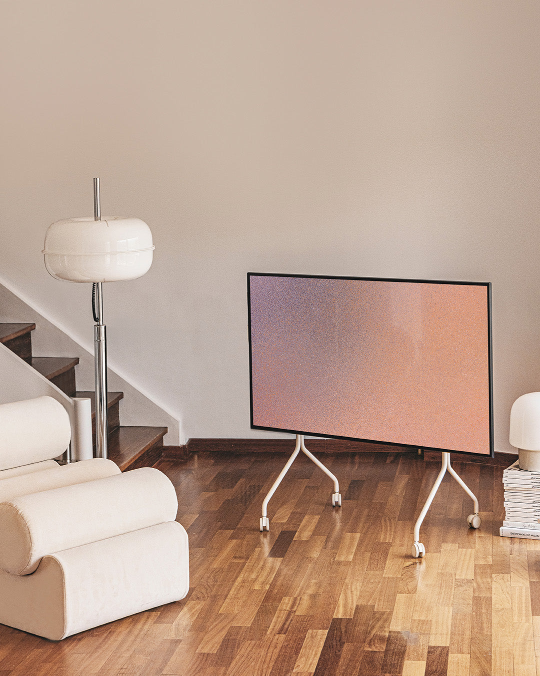 Moon Rollin'で、よりフレキシブルなインテリアデザインを実現。テレビを部屋から部屋へ簡単に移動できます。Moon Rollin'は、柔らかな曲線とPipeシリーズ特有の遊び心のあるデザインが特徴の機能的なスタンドです。柔らかでありながら遊び心のある曲線は、頑丈なスチール構造と鮮やかなコントラストを生み出し、スタンドの安定性と耐久性を確保しています。この製品には、ホイール、VESA キット、取り付けキットが含まれています。