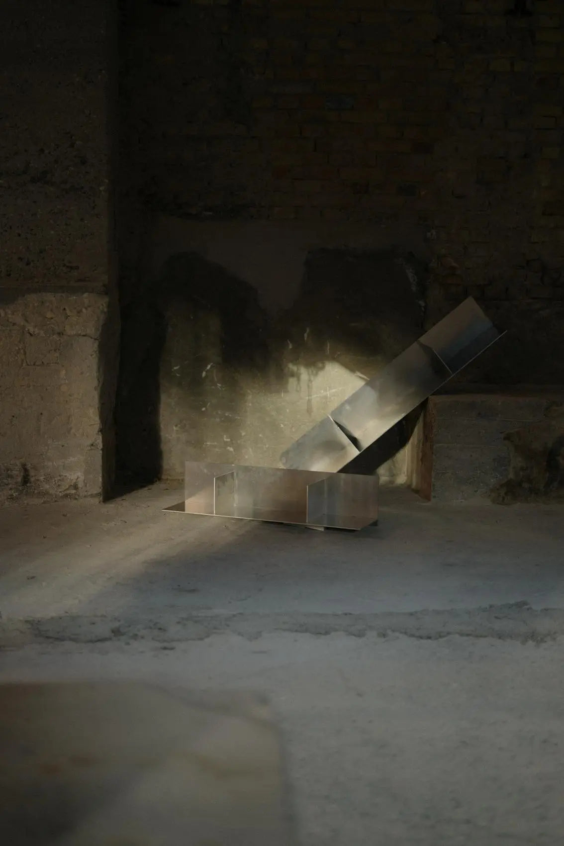 リベット シェルフは、収納とディスプレイのプラットフォームとして機能しながら、1 つの形状で基本的な収納面を追求しています。レーザーカットされた個別の未加工のアルミニウム シートを垂直に接合するのに適したリベット技法に基づいて、このシェルフは、デザイナーの Jonas Trampedach が 2011 年に開発した冷間成形組み立てプロセスでハンマーを使用して手作業で組み立てられます。
