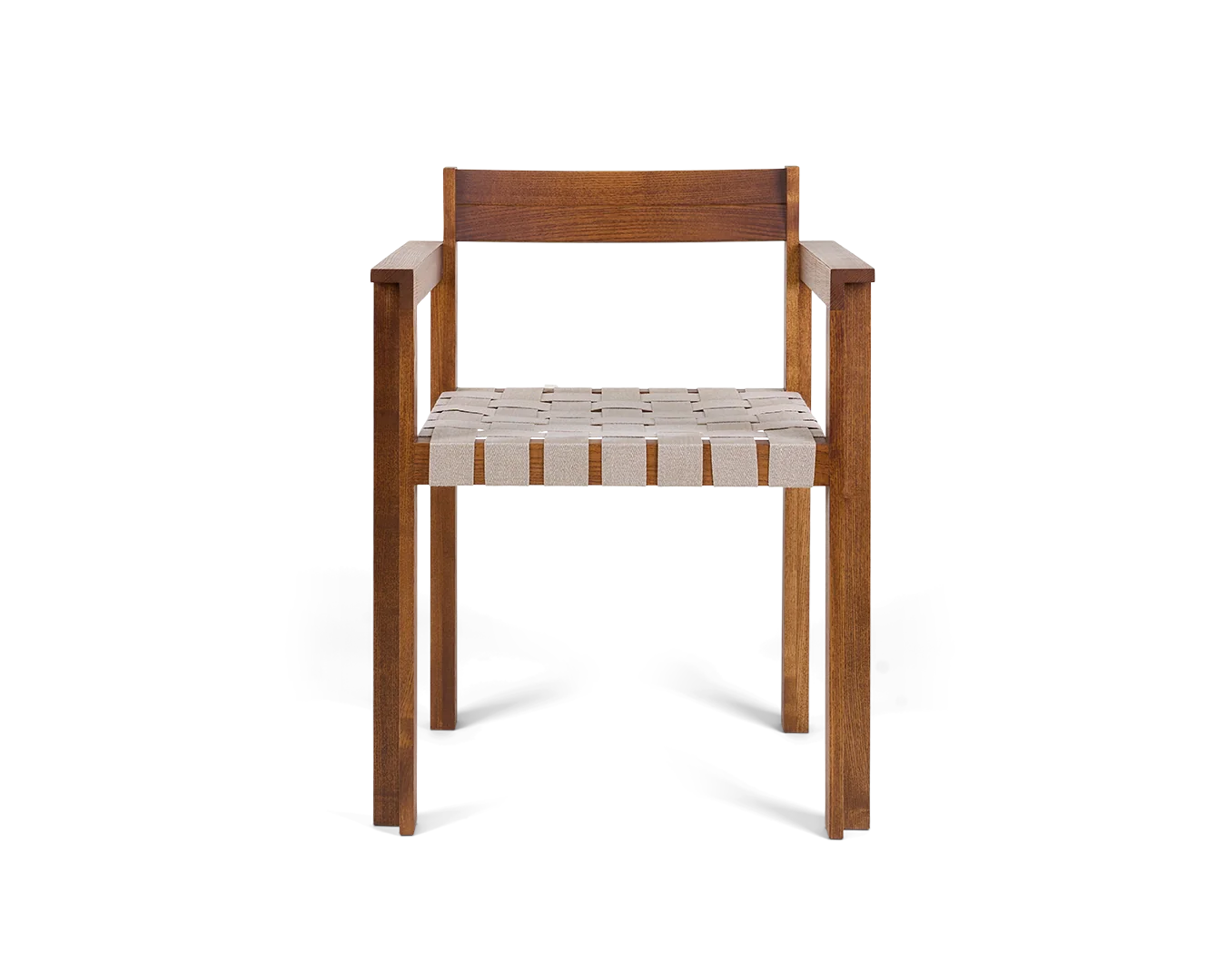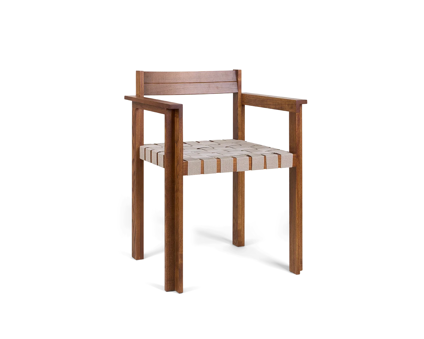 シンメトリーアームレストチェアは、直立したフォルムと落ち着いた雰囲気を併せ持ち、ダイニング、リビング、オフィスなど、あらゆるシーンでサポート力と機能性を兼ね備えたシンプルな座り心地を提供します。ウェビングを用いたデンマークと北欧の伝統的な家具を彷彿とさせるこのチェアは、シンメトリーシリーズの基調となるリズミカルな言語を想起させる素材を用いることで、シリーズを拡張しています。機能性と触り心地を兼ね備えたシンメトリーアームレストチェアは、伝統を重んじながらも、素材へのこだわりと軽やかな視覚効果を兼ね備えています。