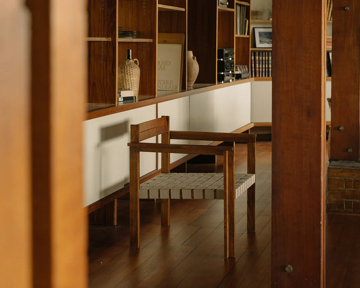 休息と静かな思索を誘うシンメトリー・イージーチェアは、シリーズに新たなフォルムをもたらします。より低く、より幅広で、よりリラックスした姿勢を体現するこのチェアは、使う人を自然にリラックスした姿勢へと誘います。ウェビングの使用を通してデンマークと北欧の伝統的な家具を想起させるこのチェアは、シンメトリーシリーズを新たな素材使いでさらに進化させ、シリーズの基盤となるリズミカルな言語を想起させます。機能性と触り心地を兼ね備えたシンメトリー・イージーチェアは、伝統を礎としながらも、素材へのこだわりと軽やかな視覚効果を兼ね備えています。