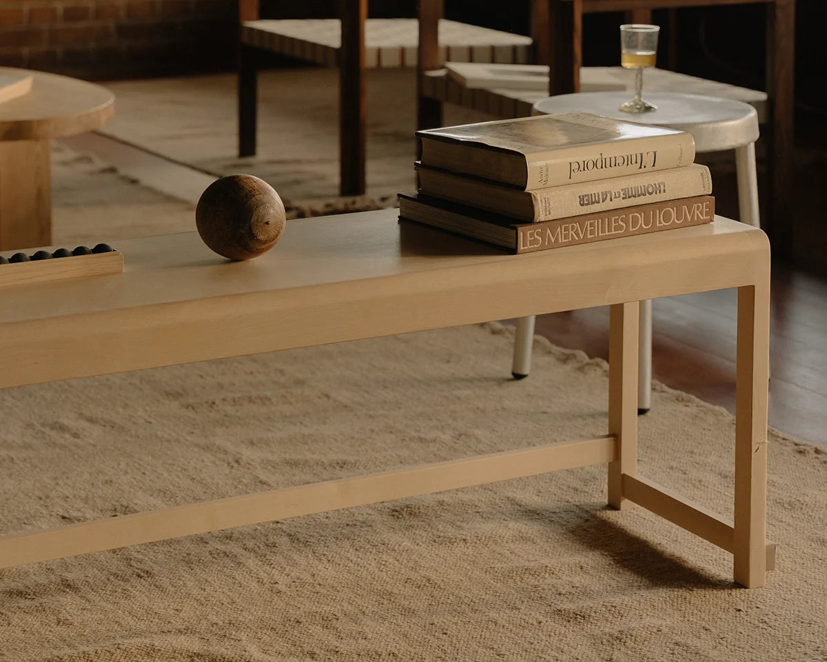 Bench 01 is defined by a straightforward silhouette inspired by seating commonly found in Nordic auditoriums and churches since the 1800s, and the simplicity of the evolution of Danish design. The bench fits two people and is made from Baltic birch. This sturdy item comes in various finishes suiting a wide range of environments, and its height is suitable for most standard dining tables.