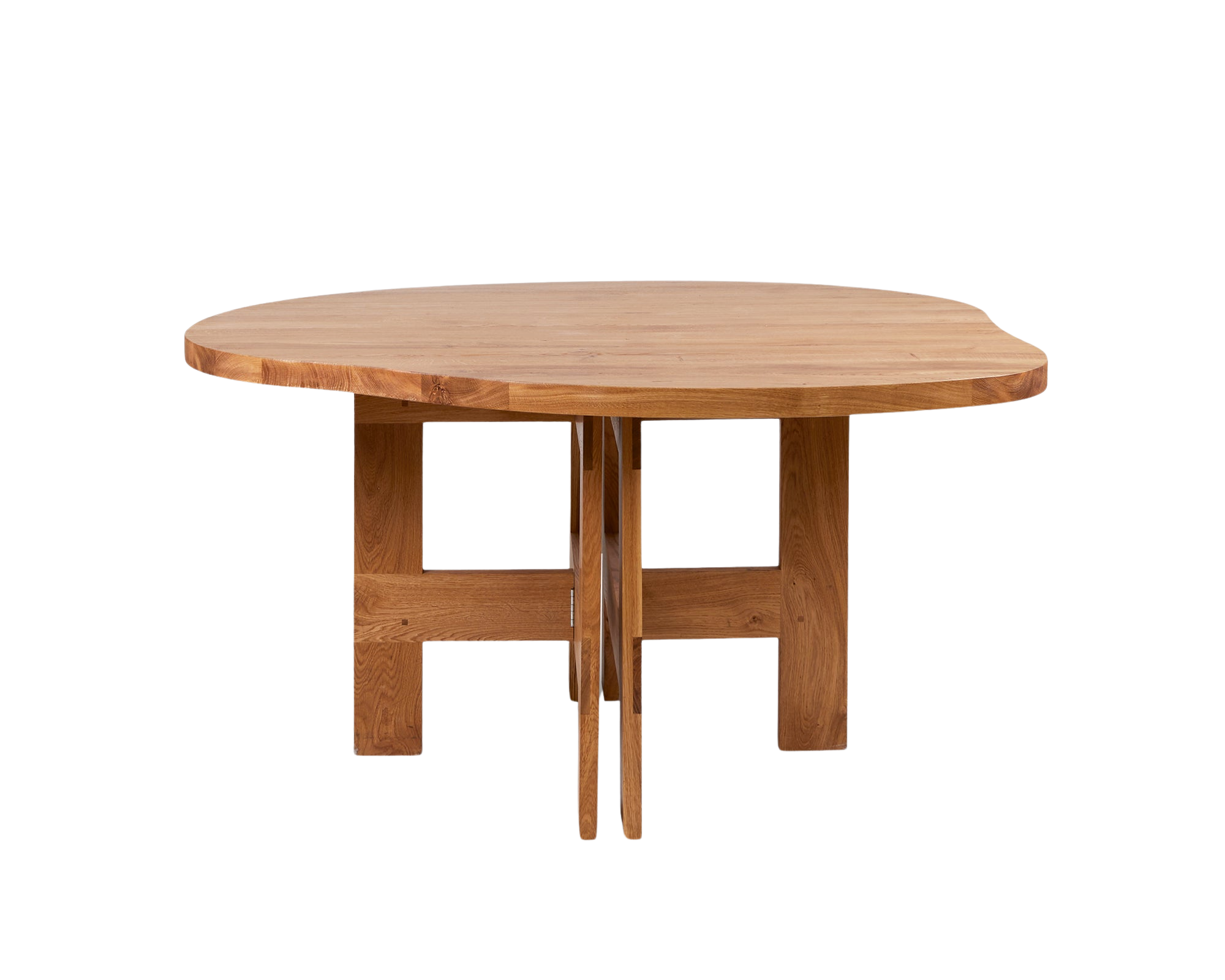 The Farmhouse Trestle Table Pond is a uniquely sculptural and organic pond-shaped table design crafted in high-quality solid oak. Supported by trestles and inspired by traditional farmhouses with a rural aesthetic, the wooden dining table serves as a focal point in any living space, kitchen, or dining room.