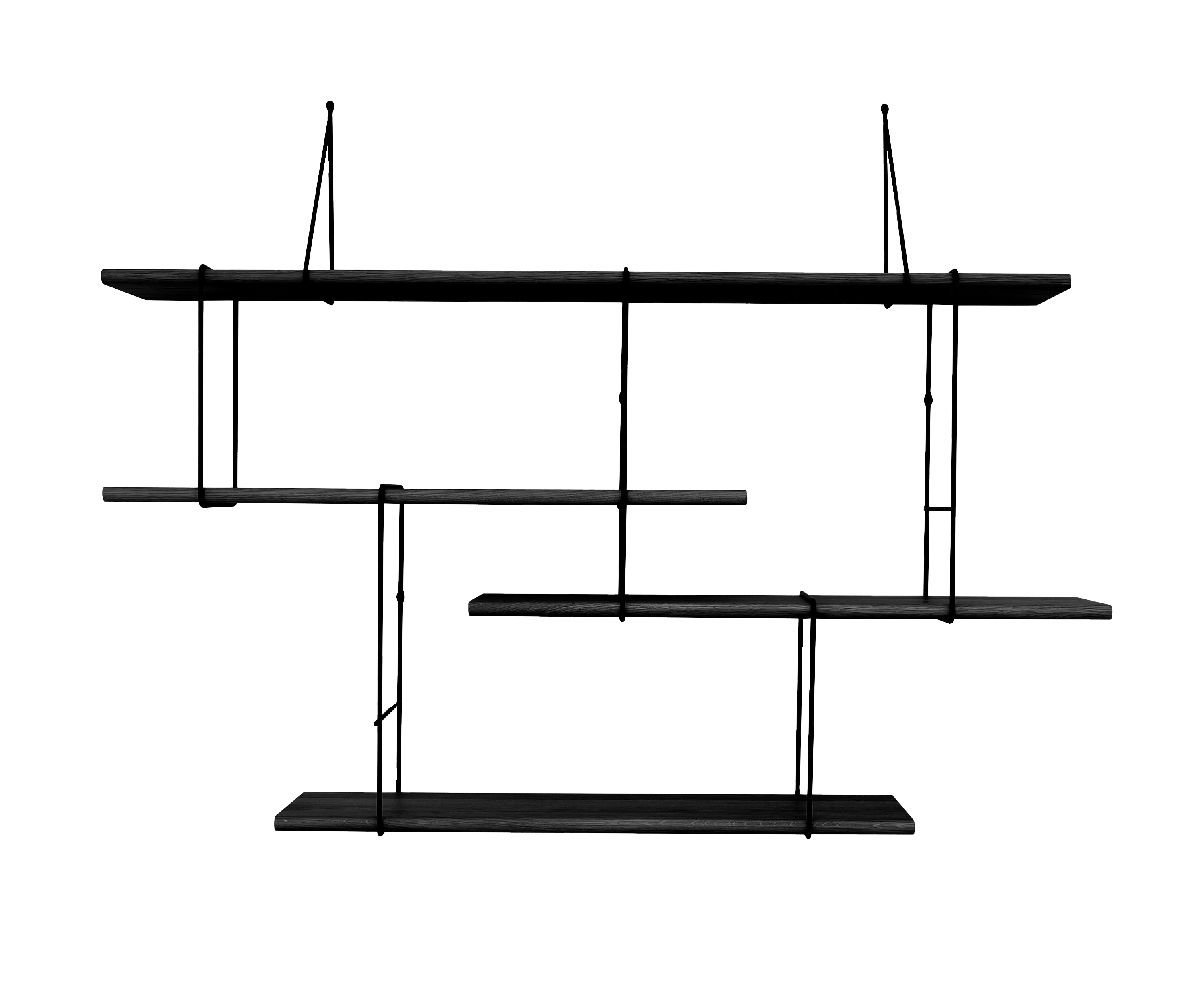 Several storage levels find their place here by cleverly working with asymmetry. They are connected with metal brackets and form an amazing floating whole, ready to house books and objects as the mood takes you.