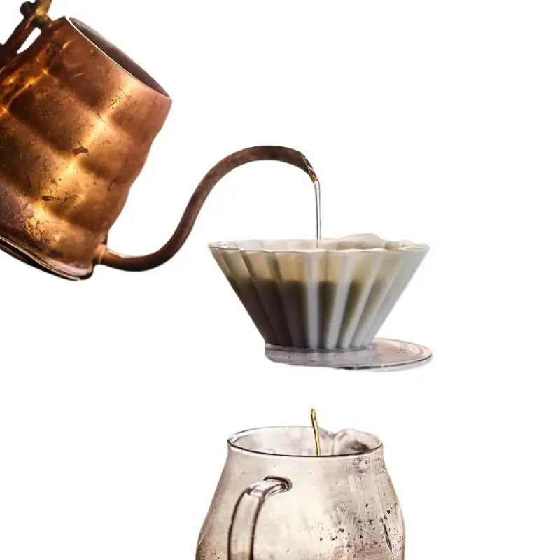 The Origami Dripper Air M is made of resin and is designed to make 2-4 cups. The vertical ribs (grooves) make it look like a folded origami. These ribs create a space between the dripper and the paper, which allows the hot water to flow away more easily. Thanks to the material, the temperature is kept constant during the brewing process. The dripper is also particularly light and robust. Made in Japan.