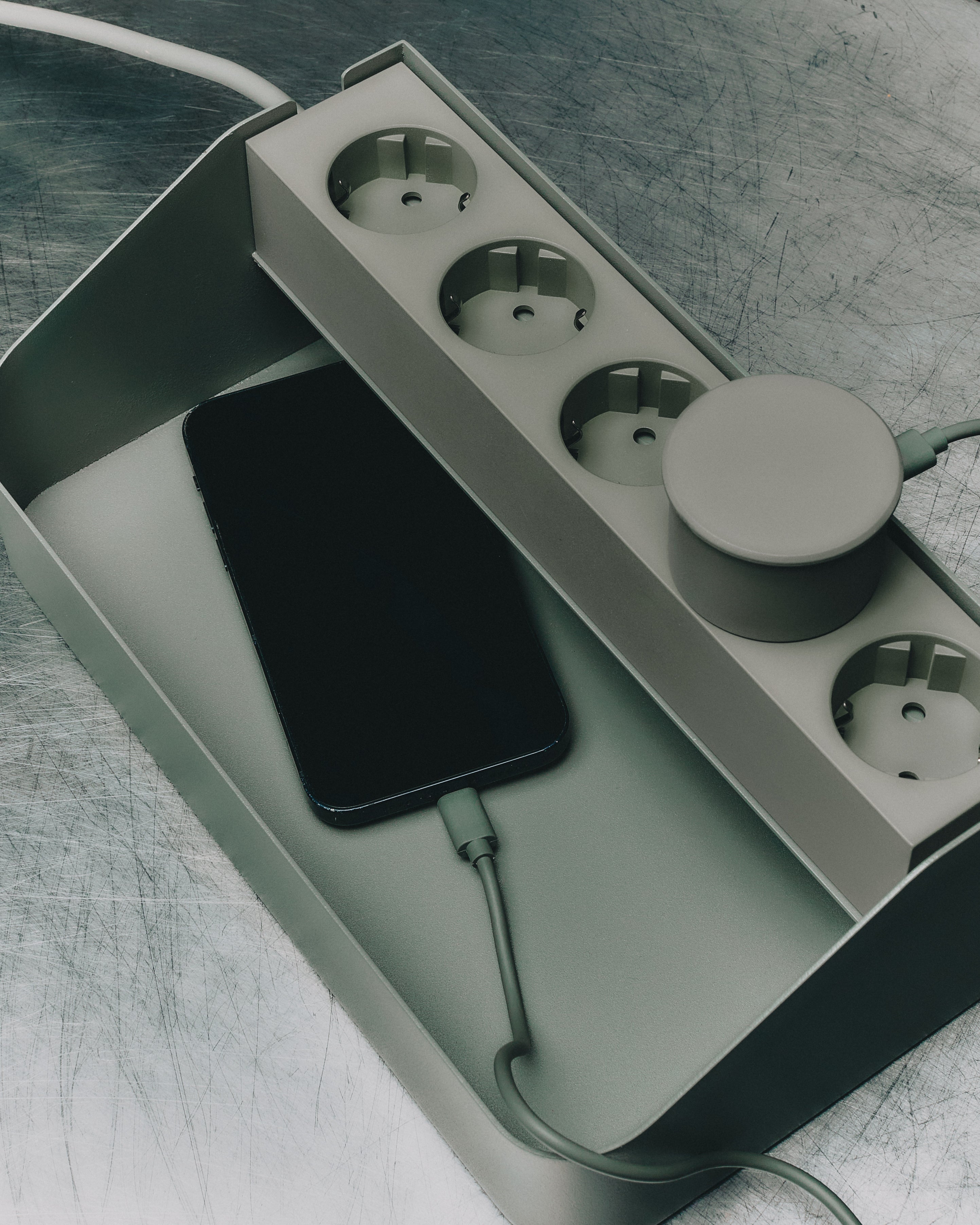 Power Tray is a steel organizer designed to keep your essentials in check, cables, adapters, and whatever else clutters your workspace. It seamlessly integrates with the Power Beam, giving you a streamlined power and storage solution in one.