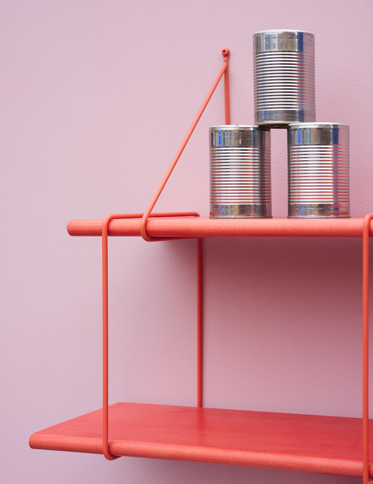 Six playful and lighthearted shelves in vibrant colors are ready to take their place on your wall. Whether in the living room, kitchen or bathroom; whether for storing books, cosmetics, spices or as a display for your collectibles, SHRINK will bring your walls to life. The SHRINK shelf is a smaller version of our LINK shelving system but it is just as good as its big brother in terms of functionality. It also shares the same values: A timeless, adaptable design and materials of the highest quality. The SHRINK salmon is a special color, strictly limited to 50 items.