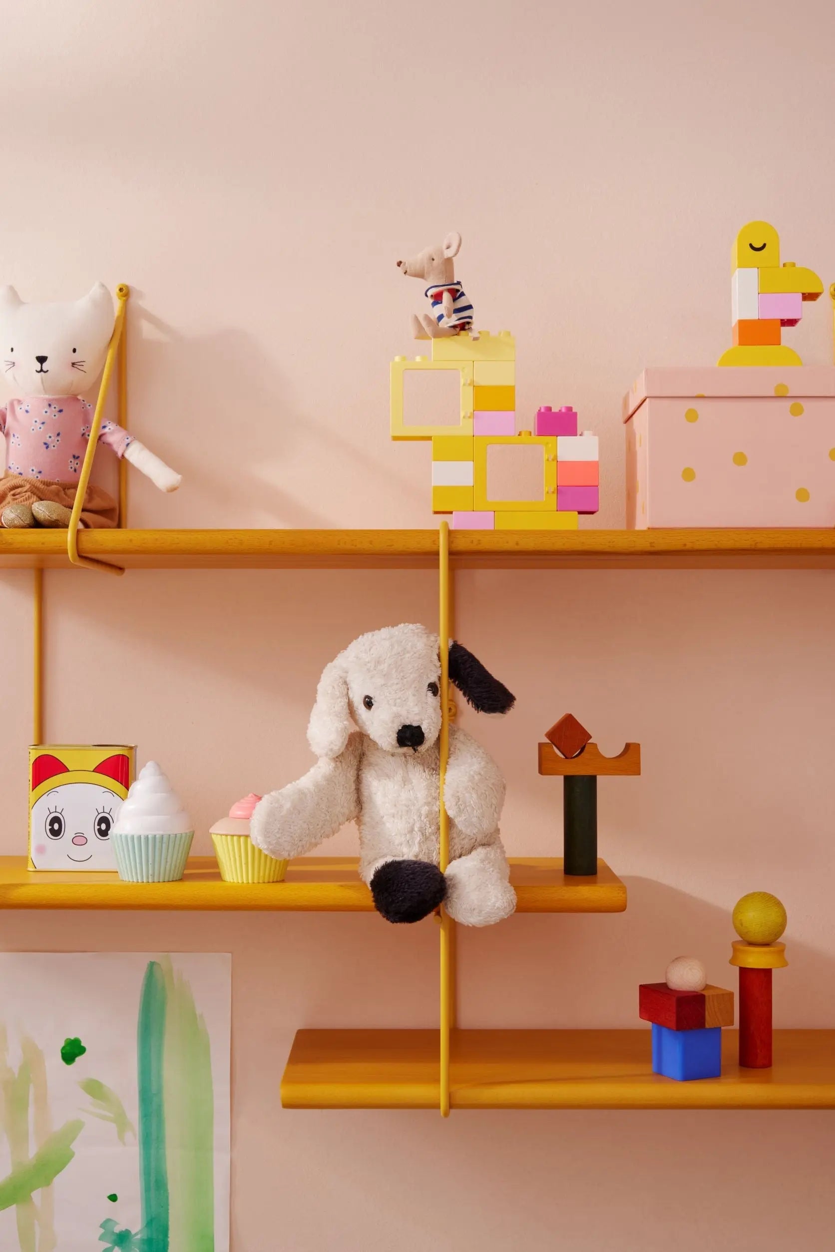 Six playful and light-hearted shelves in bright colors are ready to take their place on your wall. Whether in the living room, kitchen or bathroom; whether for storing books, cosmetics, spices or as a display for your collectibles, SHRINK will bring your walls to life. The SHRINK shelf is a smaller version of our LINK shelving system, but it is in no way inferior to its big brother in terms of functionality. It also shares the same values: a timeless, adaptable design and materials of the highest quality.