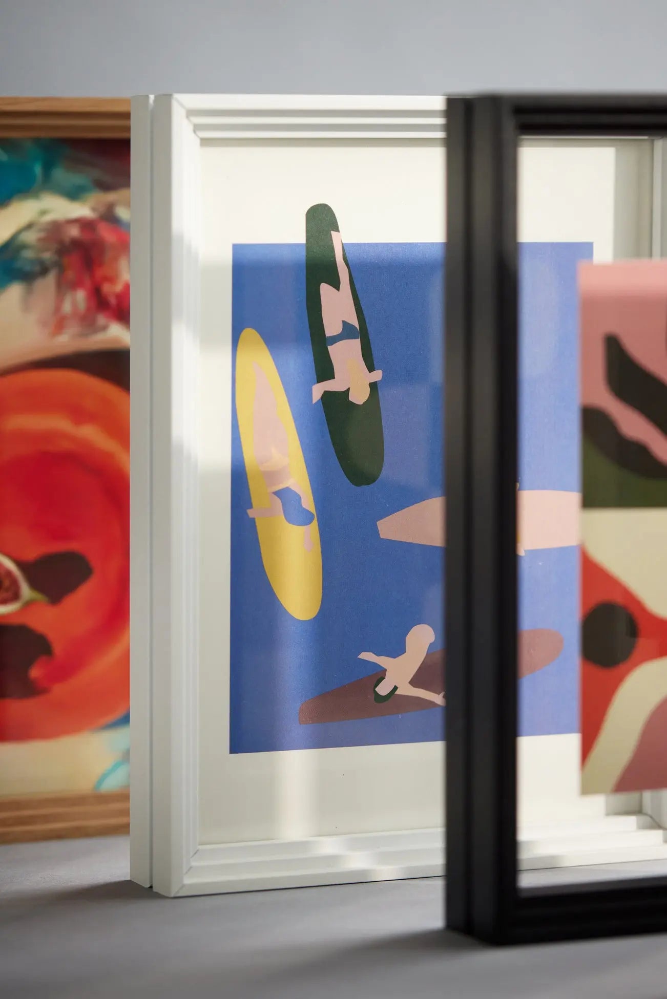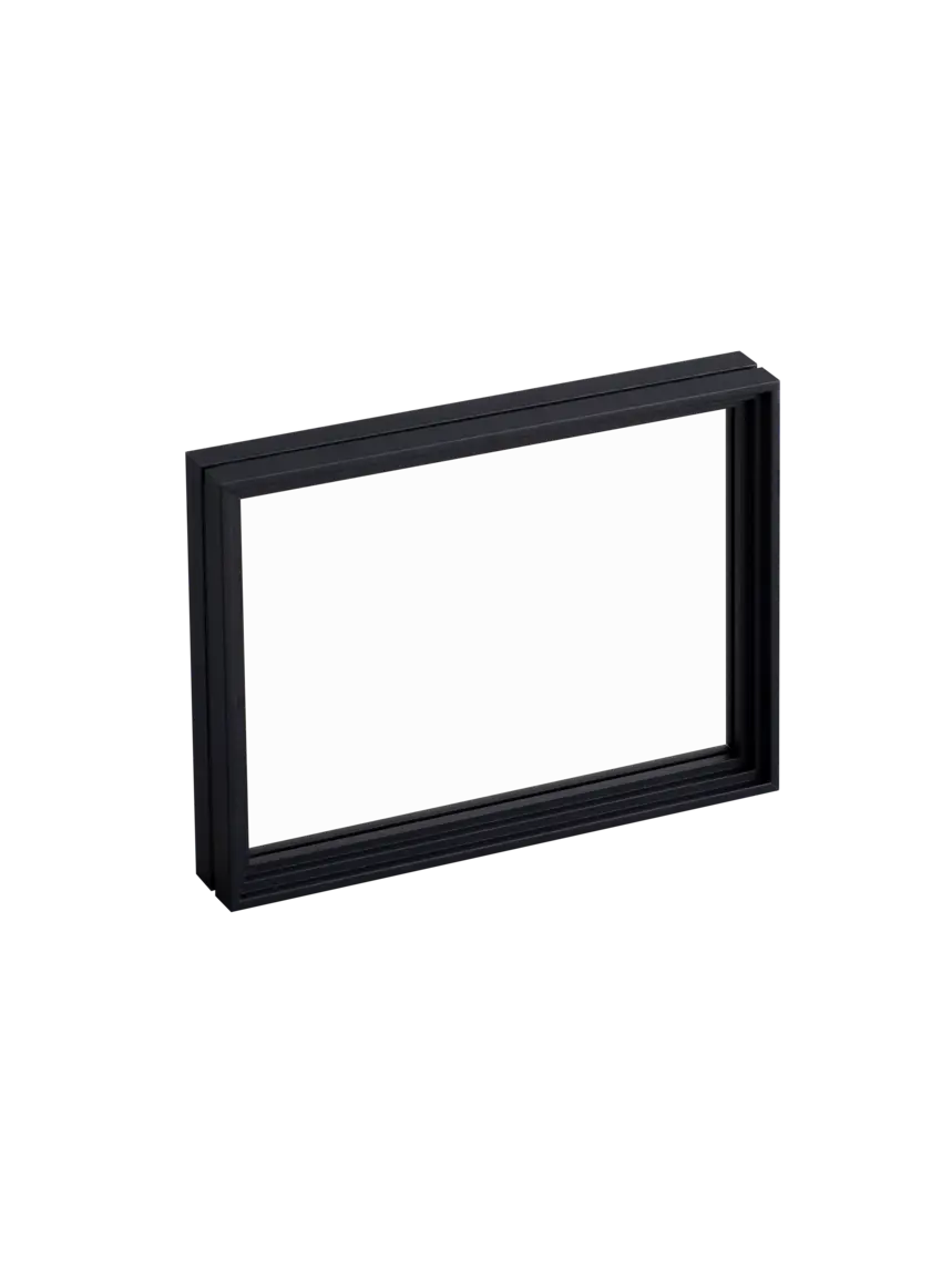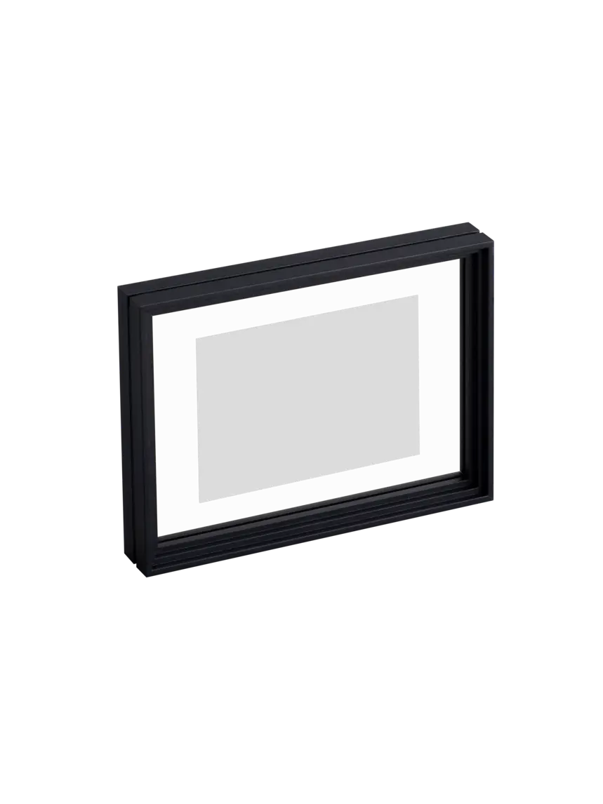 Standing Frame comprises two pieces of acrylic glass, four sides, and a rubber band. Suspend photos, flowers, or prints between the transparent glass, or fill out the entire frame. It's up to you.
